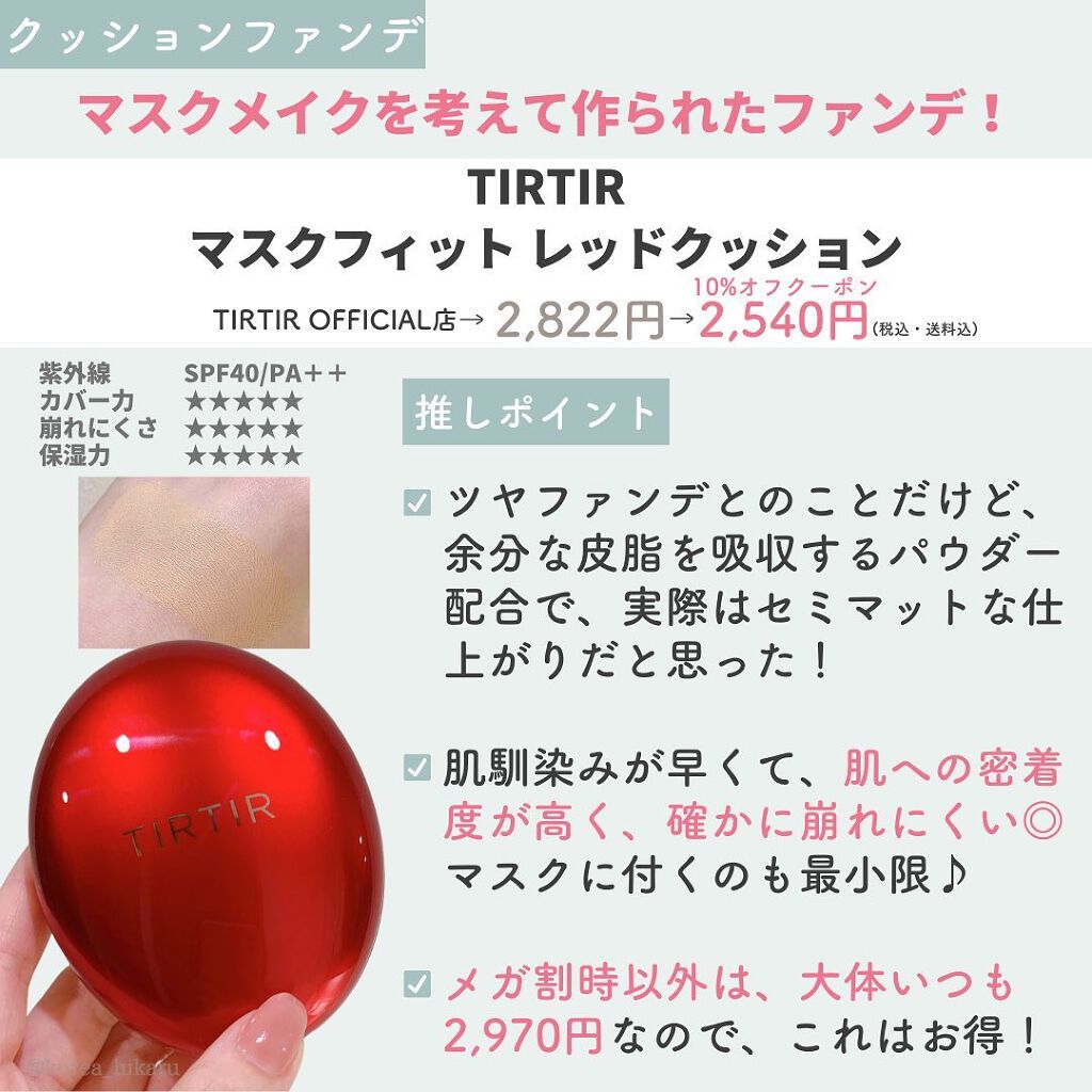 今回は、今日韓で人気上位なプチプラ優秀ファンデを8つまとめてみました💪 先日「狙っている」の投稿でもご紹介した、TIRTIRの赤も早速PLAZAでゲットして使ってみました!! 実際に検証した画像も載せているので、お買い物前の参考になれば嬉しいです🥺💕 来週からメガ割がはじまりますので、皆さん一緒に楽しみましょうね😍❤️🔥 このアカウントでは、韓国スキンケアを中心に、日本のプチプラコスメなどもレビューしています🌷 実際にじっくり使ってみて、良かったものだけをご紹介✨