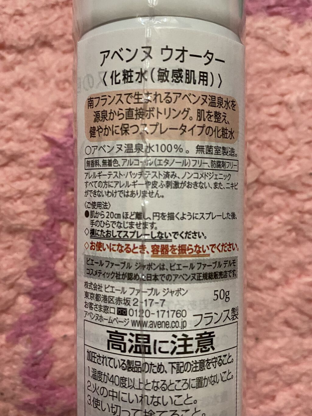 - 肌にいい水、アベンヌ温泉水100%。 肌をやわらげ、みずみずしくなめらかにし、敏感な肌をやさしく落ちつかせます。 使いやすいスプレータイプの化粧水。 ~こんなとき、こんな方におすすめ~ ●洗顔後・毎日のお手入れに ●敏感肌をはじめ肌あれ・乾燥肌~オイリー肌など、すべての肌タイプ ●化粧水の前に、プレ化粧水として ●年齢性別を問わずすべての方に ●赤ちゃん(生後3ヵ月~)のデリケートな肌のお手入れに ●外出や旅先でのお手入れに ●乾燥しがちな機内やホテルでの水分補給に ●脱毛・脱色後のデリケートな肌に 無菌室製造/無香料/無着色/アルコール(エタノール)フリー/防腐剤フリー/アレルギーテスト・パッチテスト・ノンコメドジェニックテスト済み ※すべての方にアレルギーや皮ふ刺激がおきない、また、ニキビができないわけではありません。 ※2024年9月より順次パッケージリニューアル