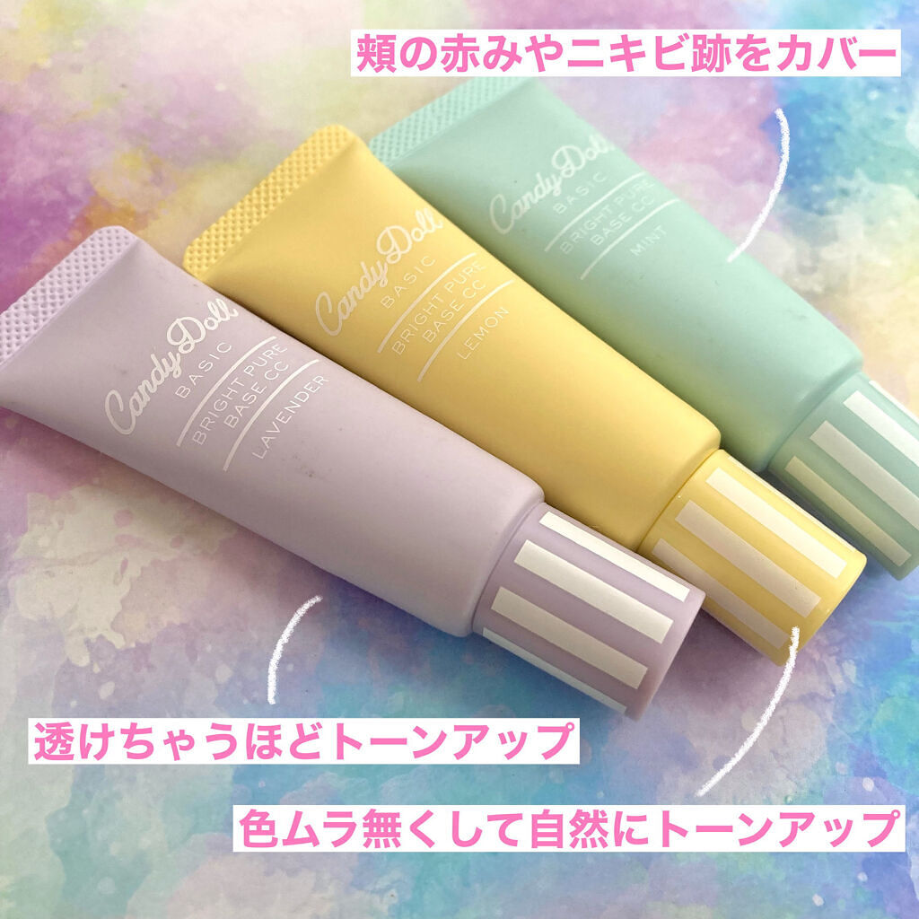 - 大人気商品のブライトピュアベースが透明感にこだわってリニューアル♡! ★商品POINT★ ①こだわりのいいとこどりカラー 肌のくすみ、赤み・ニキビ跡など様々な肌の悩みをしっかりカバーして、ただ肌を白くみせるのではなく、透けちゃうような透明感をプラスしながら肌をパンっと明るい印象にトーンアップ*♡ ②高い紫外線カット効果 SPF50+ PA+++だから、肌に透明感をプラスしながらしっかり紫外線を防いで大切なお肌の日焼けを防止。1本で日焼け止め代わりにも♡ ③ お肌に優しい使い心地のうるおいケア処方 毎日使うものだから、お肌のことを考えて、3種のケア成分&CandyDollこだわりの美容成分を追加配合。たっぷりの美容保湿成分でお肌に優しい使い心地で保湿ケア。 お肌の乾燥くすみ・色ムラが気になる方に! *メーキャップ効果による