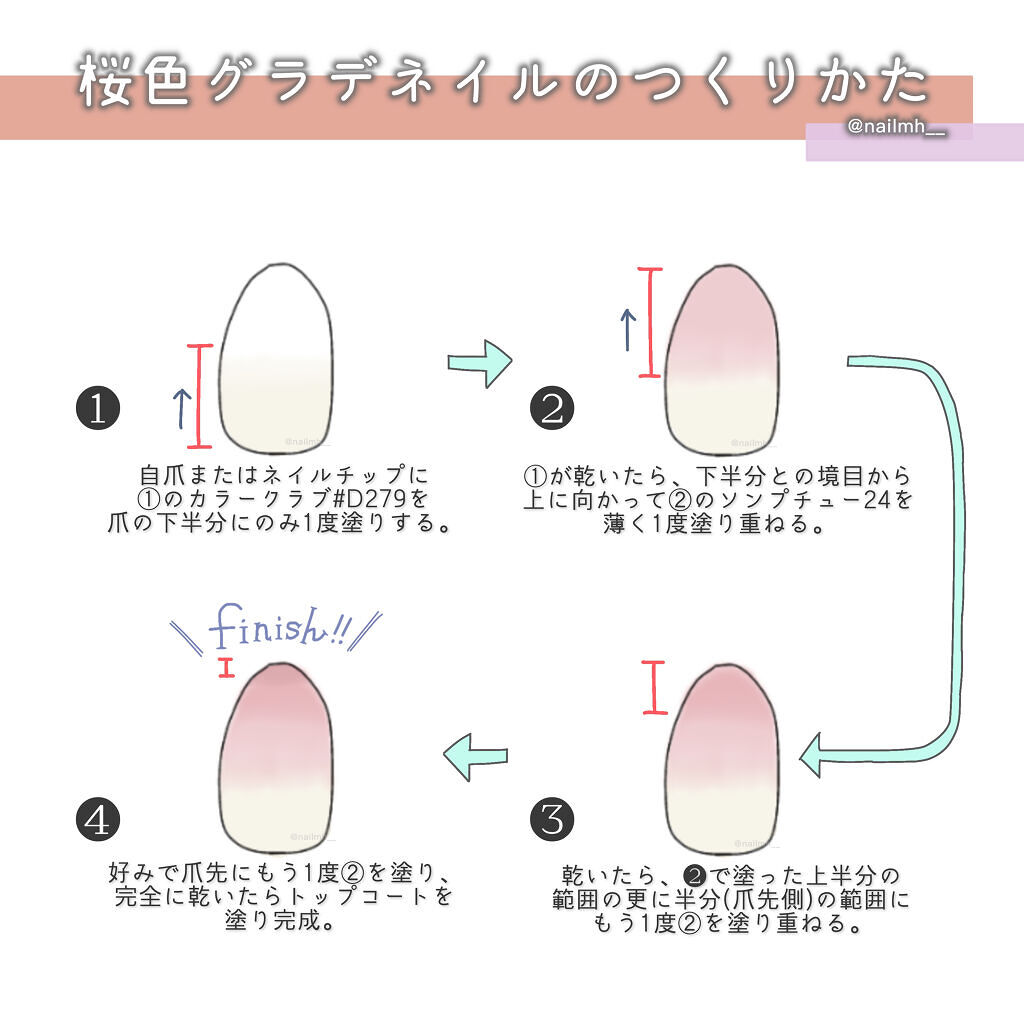 ぽわんと血色感とちゅるんとしたツヤが可愛らしいネイルの紹介です! 中心に乗せた色をぼかすときは、素早くかつハケを優しくとんとんと叩いてぼかすこと。 ぼかす時にハケ跡がついてしまうと綺麗なぽわんとした血色感にならないのでぼかす時はハケをこすったり左右に動かすというよりはとんとんと軽く叩いて広げていくようなイメージでぼかしてください