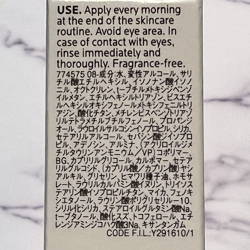 - <UVイデア XL プロテクショントーンアップ クリア> 水、変性アルコール、サリチル酸エチルヘキシル、イソノナン酸イソノニル、オクトクリレン、t-ブチルメトキシジベンゾイルメタン、エチルヘキシルトリアゾン、ビスエチルヘキシルオキシフェノールメトキシフェニルトリアジン、酸化チタン、メチレンビスベンゾトリアゾリルテトラメチルブチルフェノール、プロパンジオール、ラウロイルサルコシンイソプロピル、シリカ、セテアリルアルコール、セバシン酸ジイソプロピル、アデノシン、アルミナ、(アクリロイルジメチルタウリンアンモニウム/VP)コポリマー、BG、カプリリルグリコール、カルボマー、セテアリルグルコシド、(カプリル酸/カプリン酸)ヤシアルキル、グリセリン、ヒマワリ種子油、ホモサレート、ラウリルカルバミン酸イヌリン、トリイソステアリン酸イソプロピルチタン、マイカ、フェノキシエタノール、ラウリン酸ポリグリセリル-10、シリル化シリカ、ステアロイルグルタミン酸Na、t-ブタノール、酸化スズ、トコフェロール、エチレンジアミンジコハク酸3Na、キサンタンガム