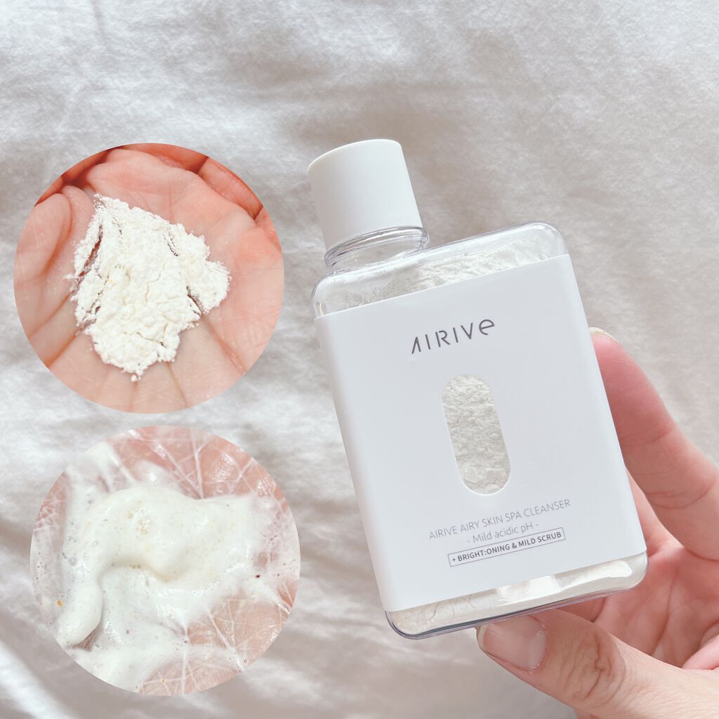 エアリースキンスパクレンザーには2種類、ブライトーニング&マイルドスクラブと鎮静&保湿タイプがあります。 ブライトーニング&マイルドスクラブには、よく見るとパウダーの中にスクラブのつぶつぶが入っています。 パウダーに2、3滴水を含ませて泡立てるとしゅわしゅわの泡の中にスクラブも入っていて、洗い上がりはなめらか! また、しゅわしゅわの泡は時間が経つとぱちぱち炭酸のように音が出るのが面白いです◎ この泡が皮膚の角質を柔らかくしてくれて、澄んだ顔色に導いてくれるみたい。 刺激が少ないので毎日使っても良さそうかな?と思います◎ また、今日は顔色が良くないな〜ってときや毛穴が気になる日に使うのも良さそう! 1分パックといって、泡を顔に乗せて1分馴染ませる使い方をすればさらに効果的みたいです。