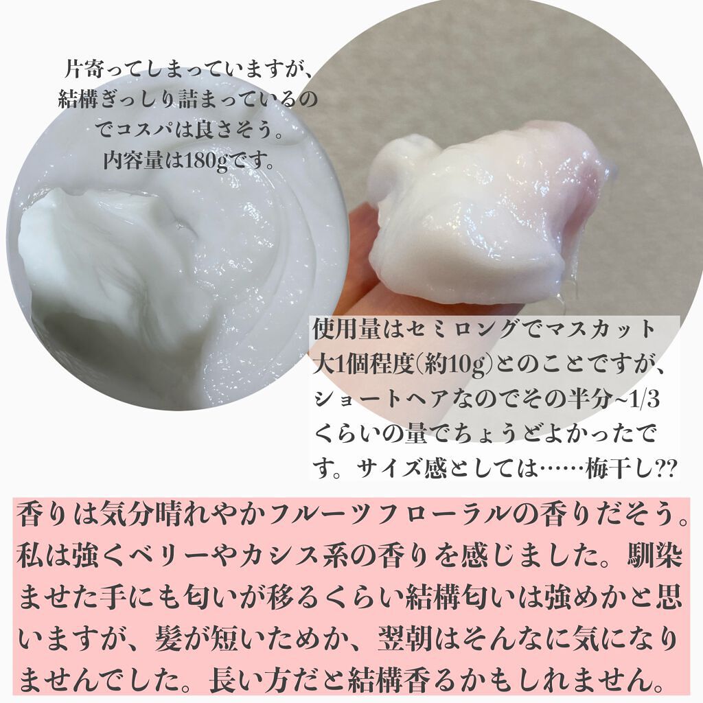 | 毛先までするするとまとまった髪になるヘアマスク。お風呂場がすごく良い香りに♡ | 詳細を見る |