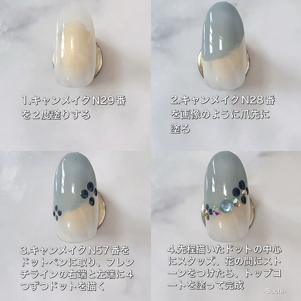 こんにちわ♡今回はキャンメイクのマニキュア2色で出来る、簡単グラデネイルのご紹介です💕先端にかけて白くなるベイビーブーマーは、美爪に見えるのでグラデの中でもとても人気デザインですよね(*´꒳`*)やり方は画像を参考にしていただければと思います...