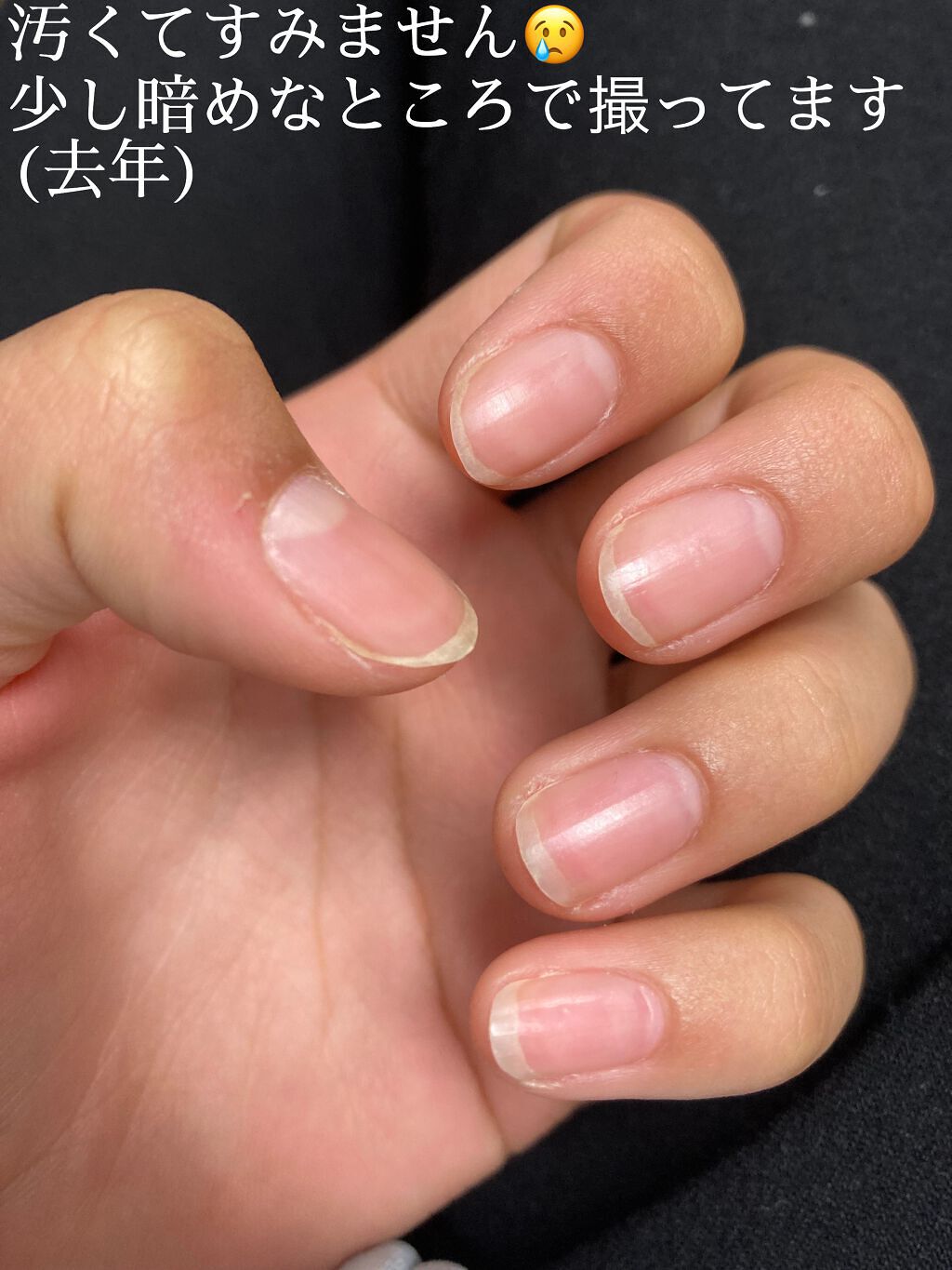 こんな感じで甘皮が無くなるだけで爪の生え際辺りがスッキリして綺麗に見えます!😊 無印良品ネイルケアオイルを爪の生え際辺り、爪全体、指先、爪の裏(塗れるところ)にたっぷり塗ります。 手で優しく揉みこみます。この時ついでに指先のマッサージもしてあげるのがオススメです😊 休日は、M・N・B・Bパーフェクトネイルコート グロッシーか、無印良品ネイルカラークリアレッドを使用しています。このふたつは前に紹介してるのでぜひ見てください✨ どちらもナチュラルに仕上がるのでとてもお気にです😊