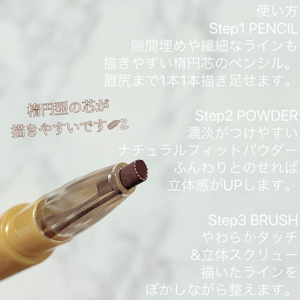 - 髪色・瞳色、ファッションに合わせて選べるベーシックからトレンドカラーまで豊富な10色展開。 簡単、美人眉。1本でパウダー・ペンシル・アイブロウ3つの機能。 描きやすいペンシルとパール感のあるふんわりパウダーで、ぼかしの効いた美人眉が簡単に描けます。 3 in 1 3つの機能をスマート搭載。3ステップで簡単にアイブロウメイク。 1隙間埋めや繊細なラインも描きやすい楕円芯のペンシル 2濃淡がつけやすく、フィット感もさらにアップしたパウダー 3やわらかタッチの立体スクリューブラシ アイブロウ人気No.1 ※エクセル商品の中で