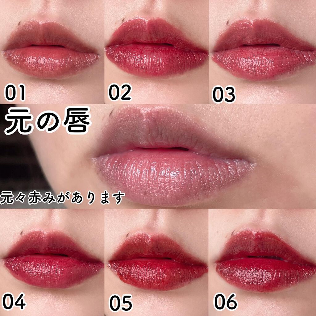 どのカラーも可愛すぎて選べなかった〜😂✨ 01 ただのベージュかと思いきやほんのり赤みがあって暗くなりすぎない 02 少し青みある?落ち着いたコーラルで誰でも使えそう! 03 青みピンクベージュはモテカラーやなぁ 04 落ち着いたモーヴは色っぽリップにオススメ 05 オレンジブラウンは夏に使えば超オシャレやん!赤みも感じられて万能説! 06 大人っぽいメイクがしたいならコレ!グラデに仕込めば一年通して良い女 どのカラーも有能すぎて争奪戦凄そう✨✨ 見つけたらラッキーですよ♡