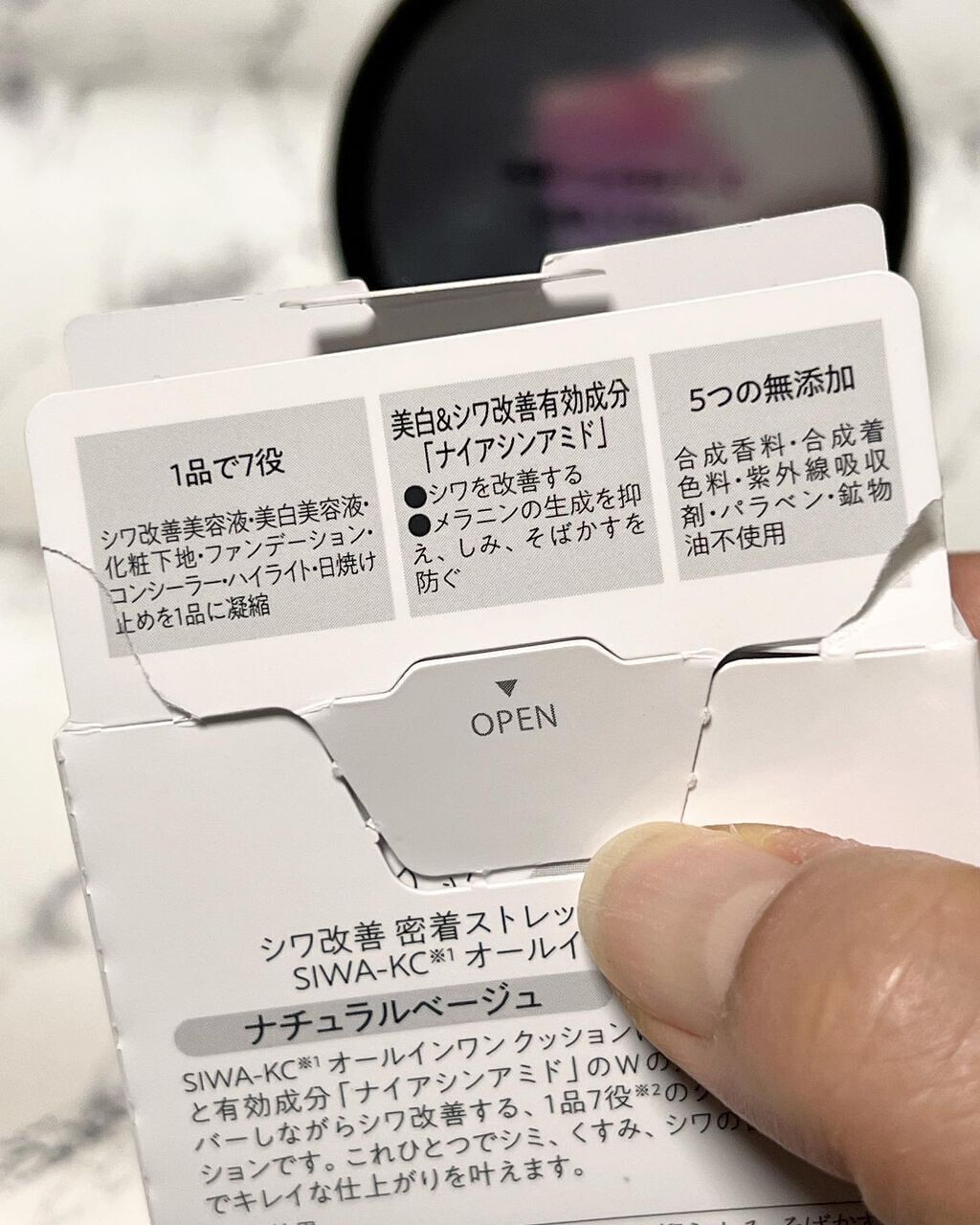 SIWA-KC※2オールインワンクッション※2SIWA-KCとは、シワ改善ケアの略。10g密着ストレッチジェル+有効成分ナイアシンアミドのWのチカラで、カバーしながらシワ改善とシミ対策*までできる新発想ストレッチファンデーション*シミ...