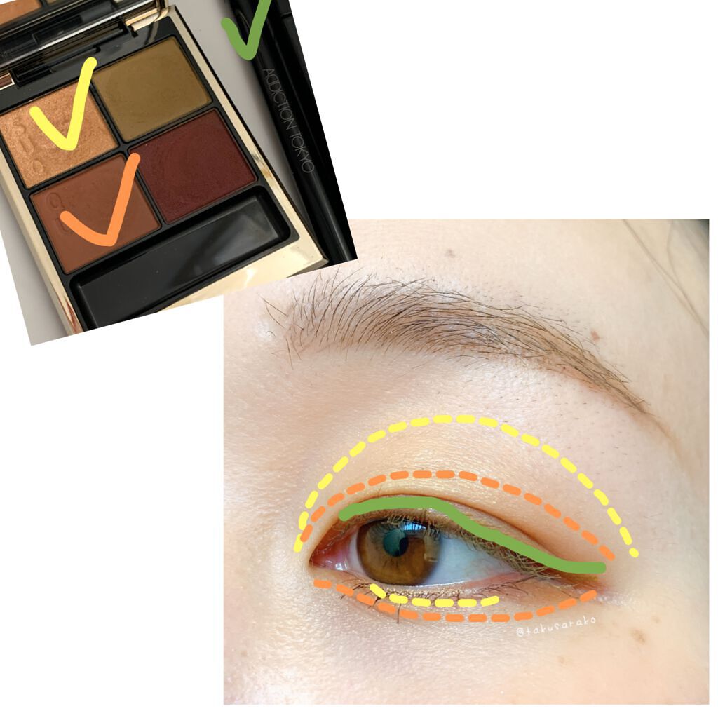 秋冬に使いたくなる冴樹🍁 左上のピスタチオをアイホールに広げると一瞬カラーが合わなくて不安になるんだけど、左下のブラウンや右下のバーガンディを重ねると何故か馴染む。 SUQQUの配色マジック🪄👏