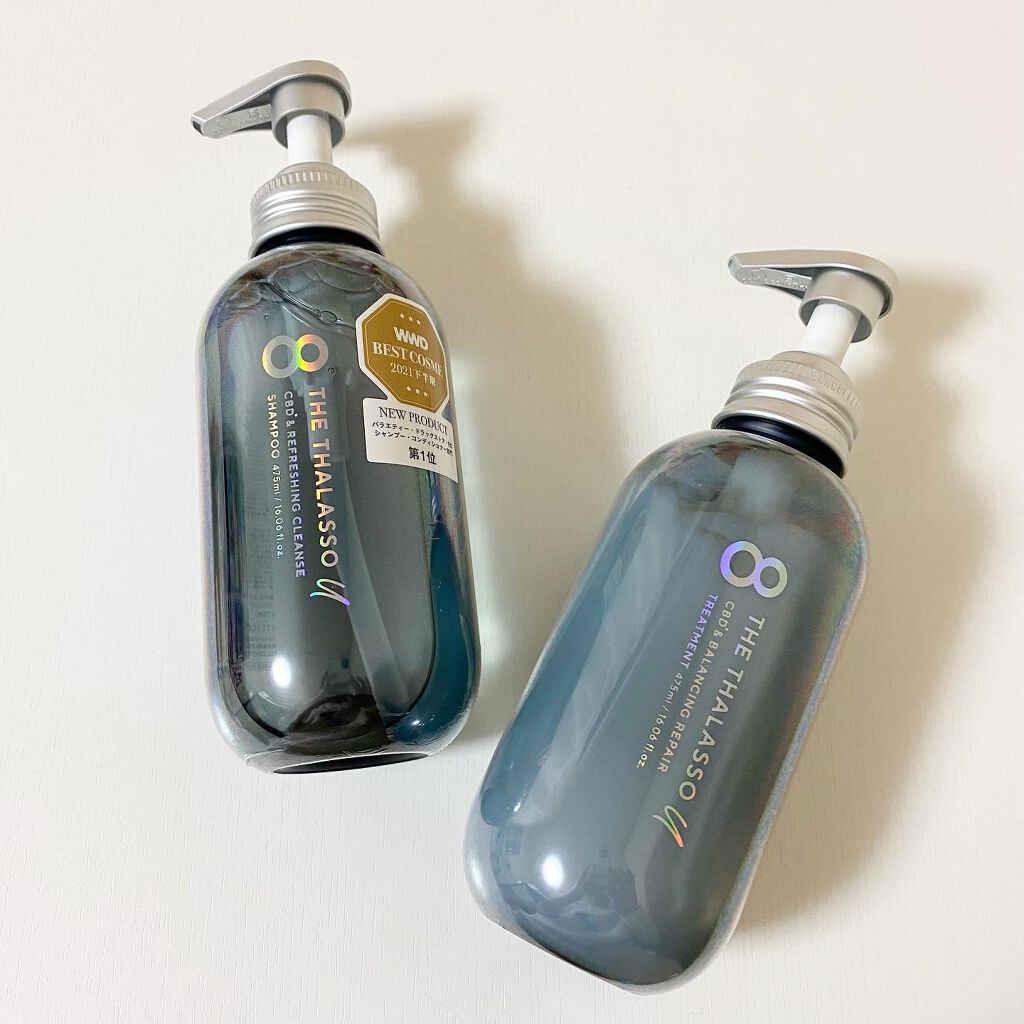 LIPSでも大人気のエイトザタラソ🫧 今回初めて使いましたが、これシャントリで過去一好きかもしれない😍 エイトザタラソ ユーはスキンケア発想で髪を保水するエイトザタラソのユニセックスライン。独自成分のCBDと海洋美髪成分が配合されていて、保水しつつ頭皮や髪のダメージの修復ケアしてくれます🐟 ムスキーサボンの香りはどこか王道のサボン系の香りではあるものの甘さもほのかにあり、男女問わずに使いやすいし、この香り大好きでした✨