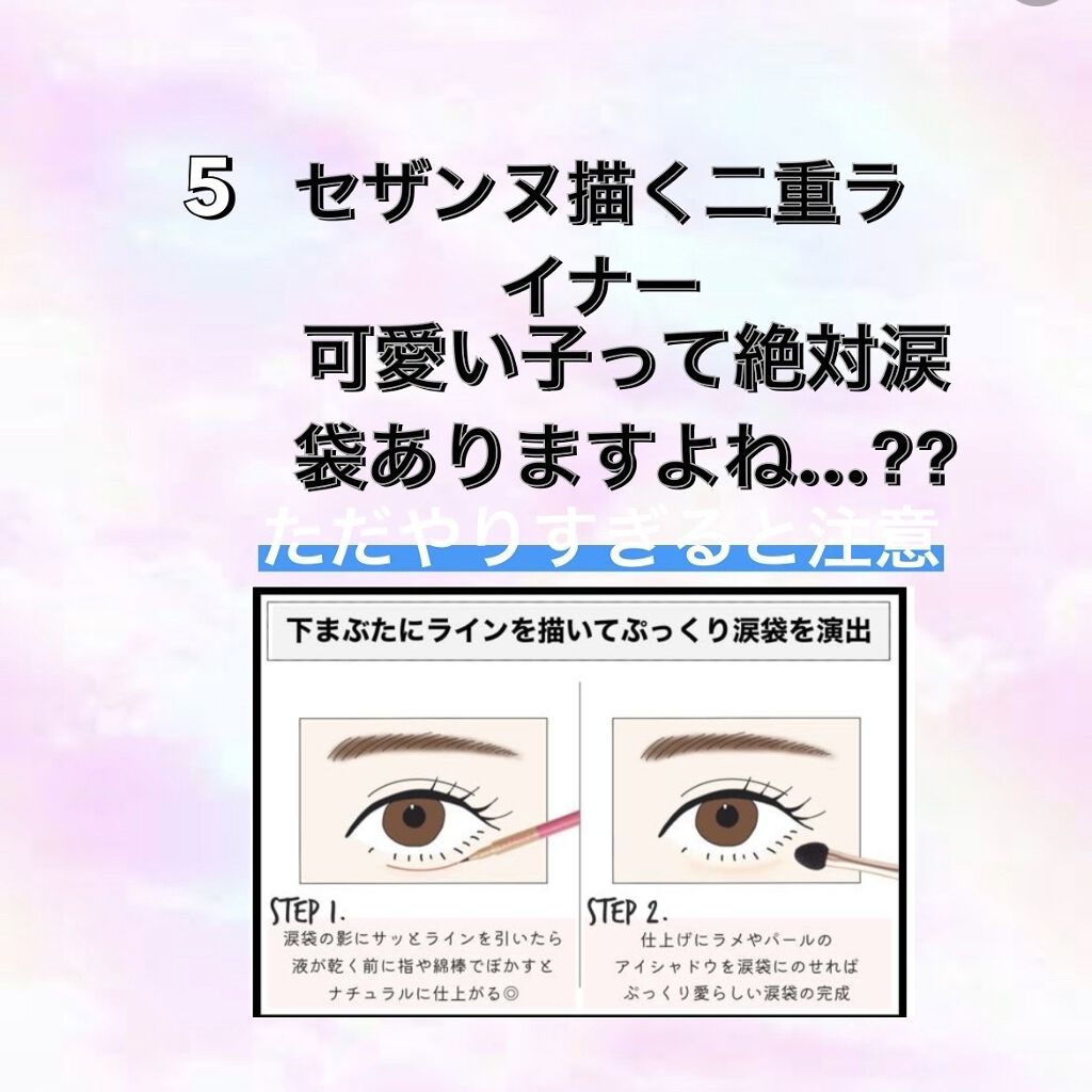 まず涙袋の油分を拭き取ります 理由は、スキンケアの余分な油分や水分が残っていると崩れやすくなるからです あとよれる原因になるからです しっかりと綿棒で優しく拭き取りましょう そしてザセムのチップコンシーラーを目頭にちょっと、真ん中にちょこんと置いて綿棒で伸ばします 続いて キャンメイクライティングリキッドアイズ 01 これを涙袋の真ん中に置いてまた綿棒で馴染ませます♪するとすこし立体感が出てきます! これでナチュラルな涙袋の完成です♪ この後にロムアンドのリキッドグリッターを乗せたりするともっと可愛くなると思います❕