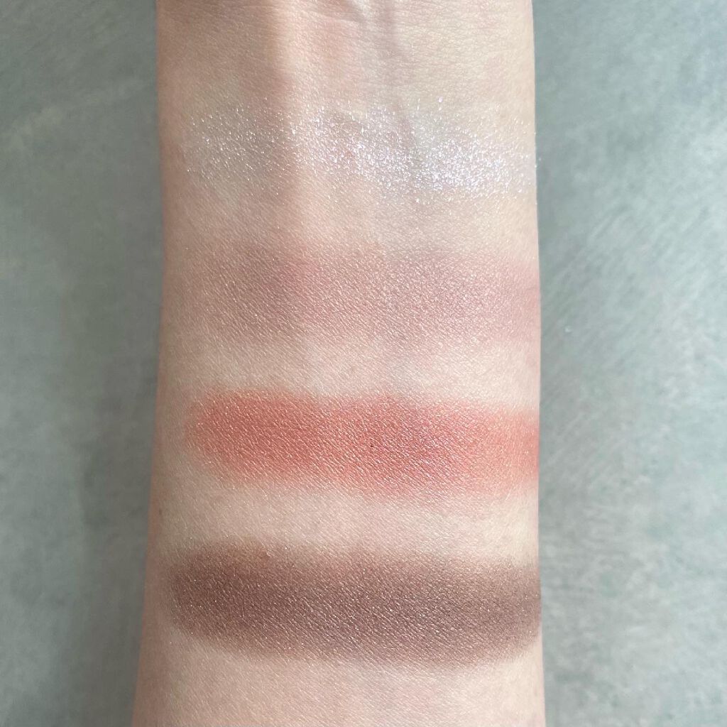 うん、やっぱ可愛い!♡ 神配色👏🏻 今の時期より夏に登場頻度増えそう🙌 ギラギラゴールドがタイプすぎる♡ 左:イエローゴールドシマー ⇒コッパーとゴールドのラメがたっぷり! 大粒ラメがギラギラ夏っぽい 右:シマリングライトピーチ ⇒発色は薄いもののベースや涙袋にだ活躍してくれる ピンクベージュ 左:オレンジ&ゴールデンシマー ⇒ありそうでなかったオレンジカラー オレンジからのゴールドの偏光がたまらない🍊 右:マットパープルレッド ⇒かなり濃いめのパープル!オレンジメイクにアクセントと深みを出してくれる