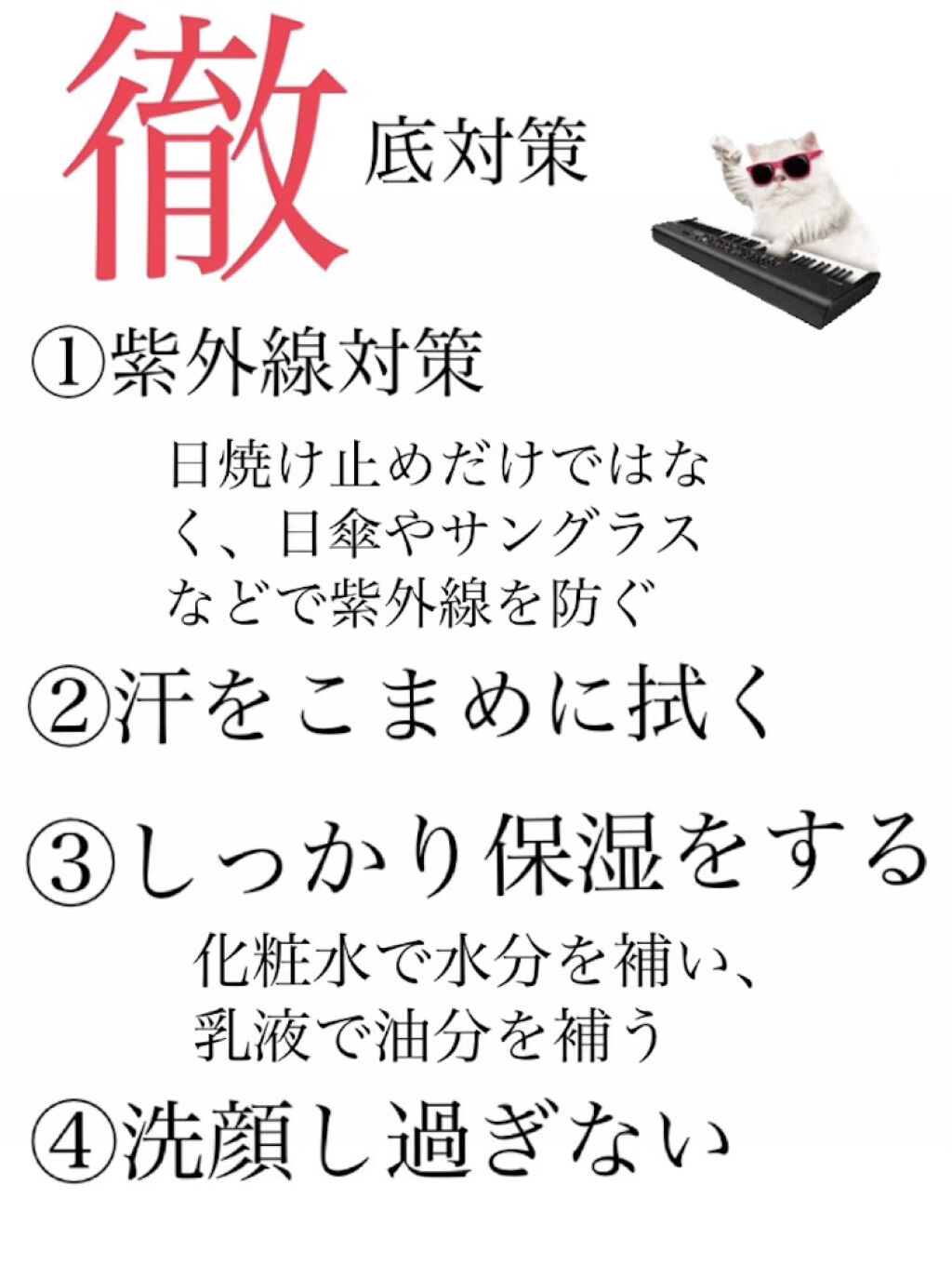 ⚠️放置した汗が肌荒れの原因になっている可能性があります。 ✓汗をかいたまま放置→細菌が繁殖しやすい環境が作られたり乾燥したりすることで肌荒れしやすくなる。 ✓汗にほこりや汚れが付着→汚れが刺激となって肌が敏感に反応することで肌荒れしやすくなる。 肌荒れを防ぐ一番のポイントは、汗を放置しないこと。こまめに&やさしく、すぐに洗い流すか濡らしたタオルなどですぐに拭き取るのが汗による肌荒れを防ぐポイントです。 ⚠️汗は大事です‼️体温を調節したり、体の余分なものを排出したりと重要な役割を持っています。汗をかかないようにするのではなく、肌荒れの原因にならないようにケアし、上手に付き合っていくことが大切です。