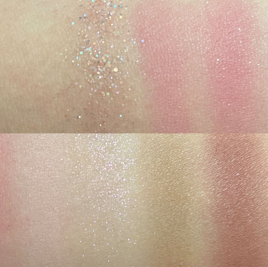 ナチュラルすぎるハイライトですが むしろそこが使いやすく ツヤが少しで良い日はこれだけ しっかりハイライト入れたい日は別のものを組み合わせます 目の周りのcゾーンを中心に チークとアイメイクの間をこれで埋めると ブルーパールのおかげなのか透明感が出て明るく見えます😊 買った時は物足りなくて失敗したかと思いましたが今では本当に欠かせないです このシリーズについてるブラシも好きで プチプラなのに毛の量がしっかりで使いやすい◎