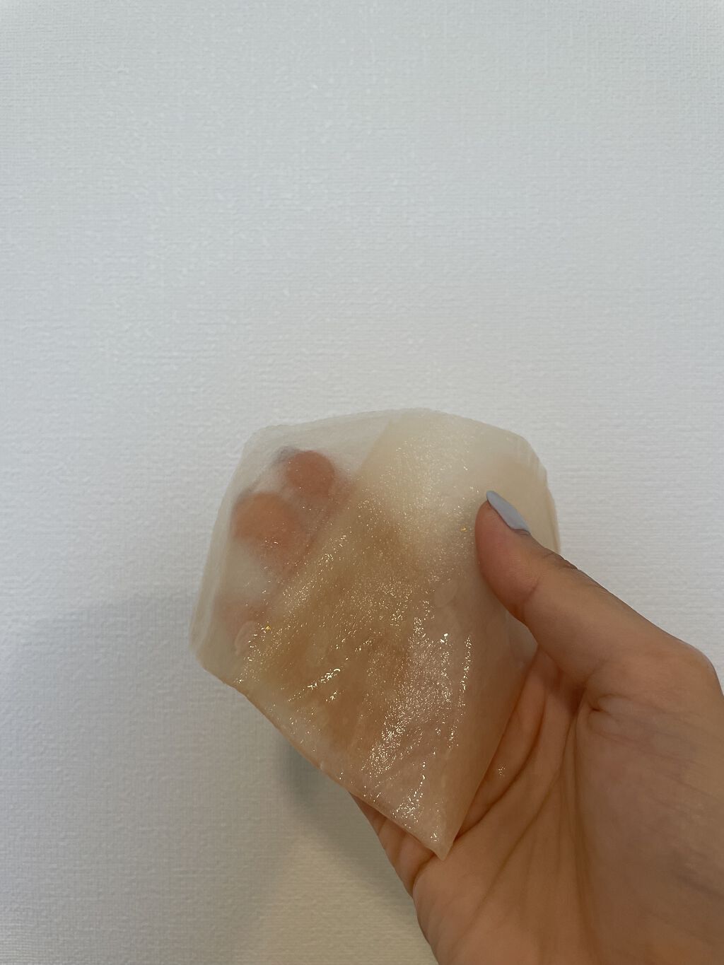 ジェルみたいな感じになっていて、中に黄色いカレンデュラの花が入ってます!!🌼 ピーリングパック初めてだったので、いざ塗ってみると冷たいジェルでとても気持ち良かったです!😌 しばらく放置(20-30分)するとだんだん乾いてきて、顔じゅうの皮膚が引っ張られるようになってきます! ピーリング前は顔の皮膚がつっぱるくらい固まるので乾燥が心配でしたが、ピーリングしてしまえばかなりしっとりしてました!!😌 初ピーリングパックでしたが、使った後は肌が平らになる気がしました!!あとファンデーションの化粧ノリも確実に良くなりました!👏🏻