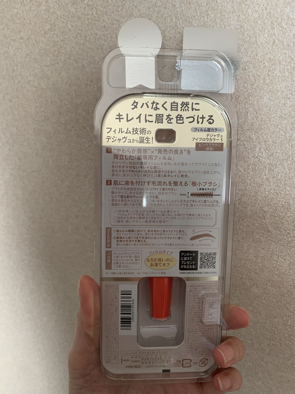 - \\25年3月定番新色モカグレージュ発売// 「フィルム眉カラー」なら眉の印象を自然にやわらげ、ふんわり質感の垢抜け眉に! 1.塗りやすい極小ブラシ ・ 先端直径3mmで、地肌に液がつきにくく根元から色づける ・余分な液がつかない設計で、ティッシュオフ不要 2.眉専用フィルム液 ・眉毛1本1本にキレイに色付き、自眉の黒さをやわらげる ・タバになったり、パリッと固まったりせず、まるで自眉のような仕上がり ・皮脂・汗・こすれに強いのにお湯で簡単オフ (※2025年9月以降、商品パッケージをリニューアル。)