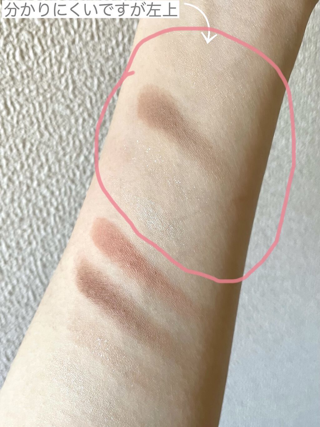 102と103はなんとなく似てる雰囲気があってどちらか購入しようと決めていましたが私は使いやすそうな102にしました╰(*´︶`*)╯♡ 102は上段がマットで左下が103よりも繊細なラメです。バームのハイライトはだいぶ重ねないと色味が出ないかなと感じました! バームは鼻筋に薄く乗せたら違和感なく使えますのでバームのハイライトが赤すぎて購入を迷ってる方は大丈夫だと思います⭕️ ラメもゴールド系で馴染みもよく、チラチラと輝きますしよく見ると多色ラメっぽく見えました! 少し使ってみた感想は『とてもいい!』です! 限定なのが勿体無いくらいです😭 デイリーユースしやすいですしラメも既存より派手ではないので使いやすいしマスク生活の今これで目元で血色感が出せます!💯 定番化して欲しいと切実に思います😢 103も見てみましたが赤み強めなのが言い方は103、デイリーユースしやすくピンクブラウン系が欲しい方は102おすすめです♪