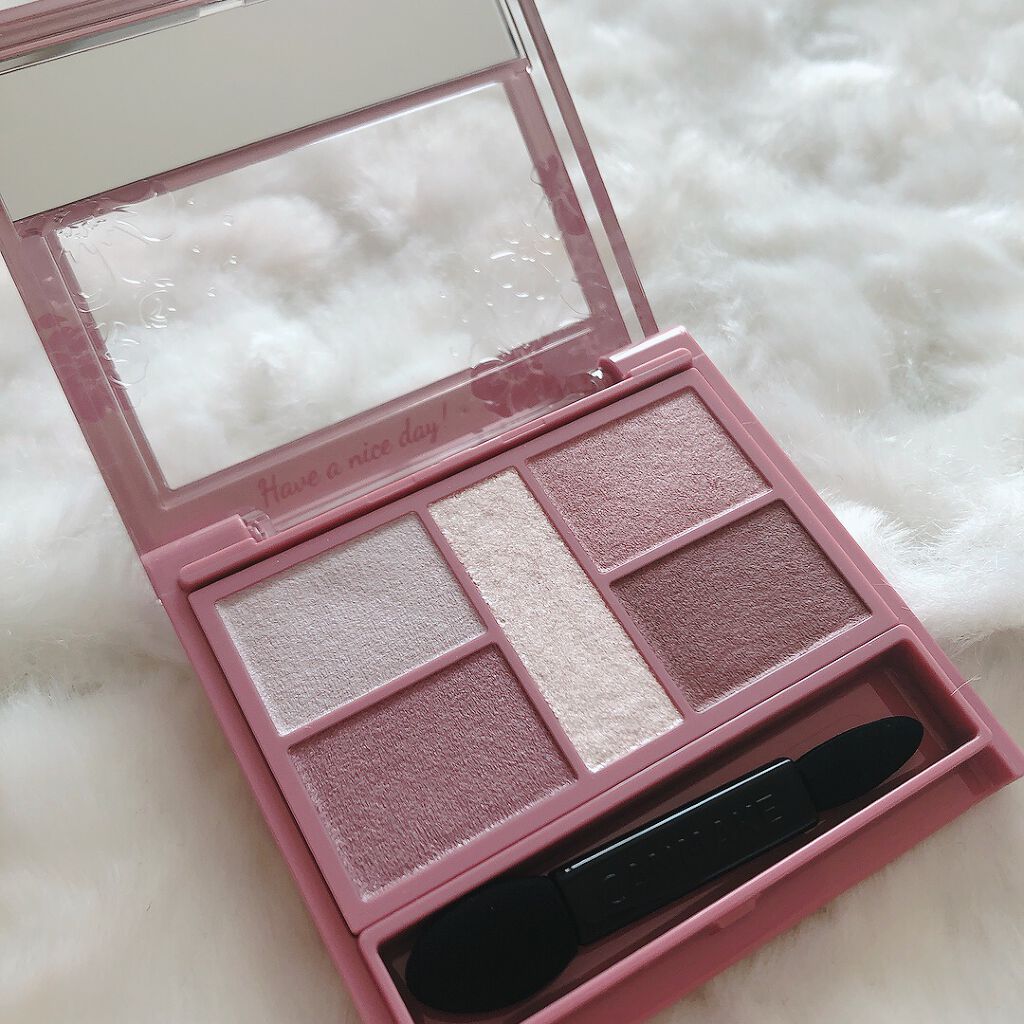 - 1枚のパレットで2つのスタイルが完成! 5色の欲ばりアイシャドウ♥ メインカラーを選んで2つのスタイルが楽しめる! A→B→D でスタイル1 A→C→D でスタイル2 繊細な粉質が、しっとりとまぶたに密着して色落ちを防ぎます。 透明感のあるキラうるトッピングジュエル(繊細ラメ)は、気分によってトッピング!