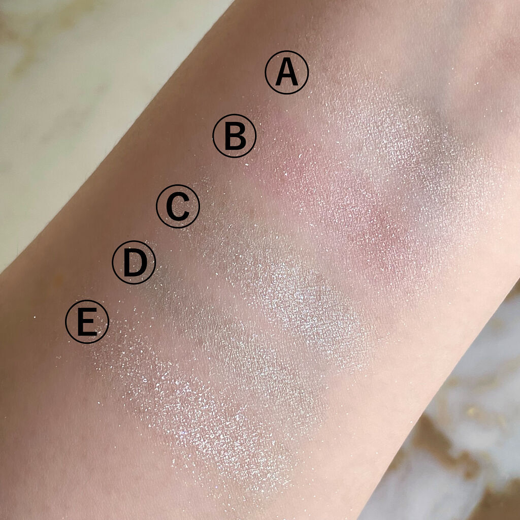 - 1枚のパレットで2つのスタイルが完成! 5色の欲ばりアイシャドウ♥ メインカラーを選んで2つのスタイルが楽しめる! A→B→D でスタイル1 A→C→D でスタイル2 繊細な粉質が、しっとりとまぶたに密着して色落ちを防ぎます。 透明感のあるキラうるトッピングジュエル(繊細ラメ)は、気分によってトッピング!