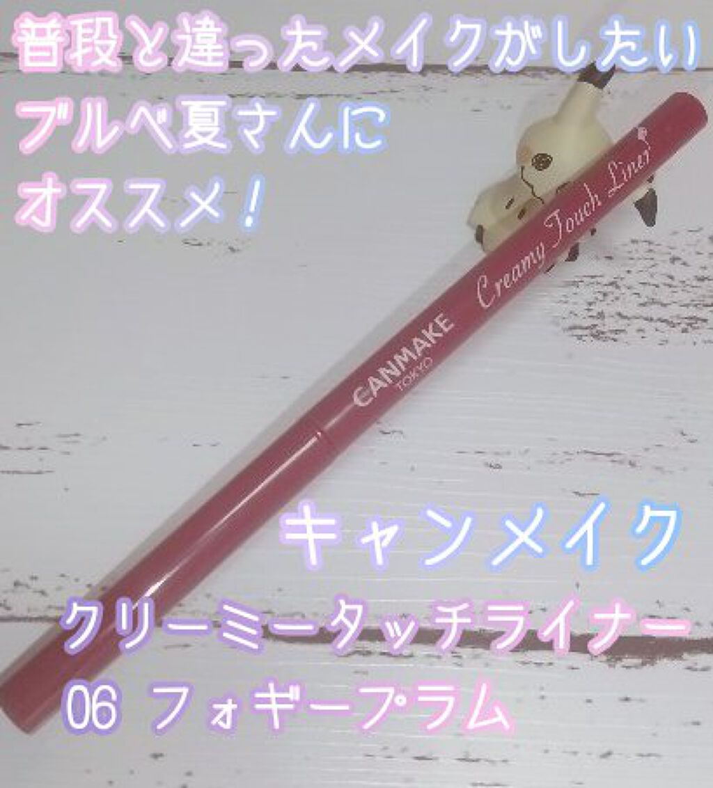 CANMAKEクリーミータッチライナー【使った商品】06フォギープラム【商品の特徴】¥715円(税込)0.08g1.5mmの極細芯高発色高密着WP美容液保湿成分配合繰り出し式(戻らない)【使用感】品のある色気を感じるモーヴカラー描きやすさや滑...