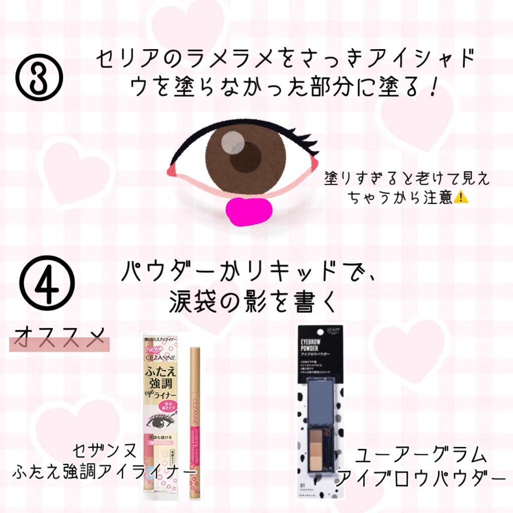 めっちゃ盛れる!涙袋のつくりかたෆ⸒⸒今まではアイシャドウ+ラメだけでつくっていたんですが、うまくいかず…コンシーラーを使ってぷっくりとした涙袋を作ることができました〜(˶˙ᵕ˙˶)︎︎パウダーで影を書いてからリキッドでなぞると落ちにくい涙袋...