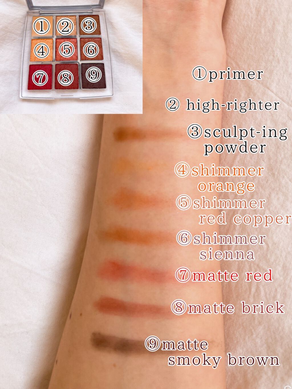 - 8色のアイシャドウと1種のプライマーがセットされたアイパレット。ナチュラルな目元にも、陰影をしっかりつけたいときにも使えます。プライマーは、上から重ねるアイシャドウの発色をよくし、美しい仕上がりを長時間持続させます。"