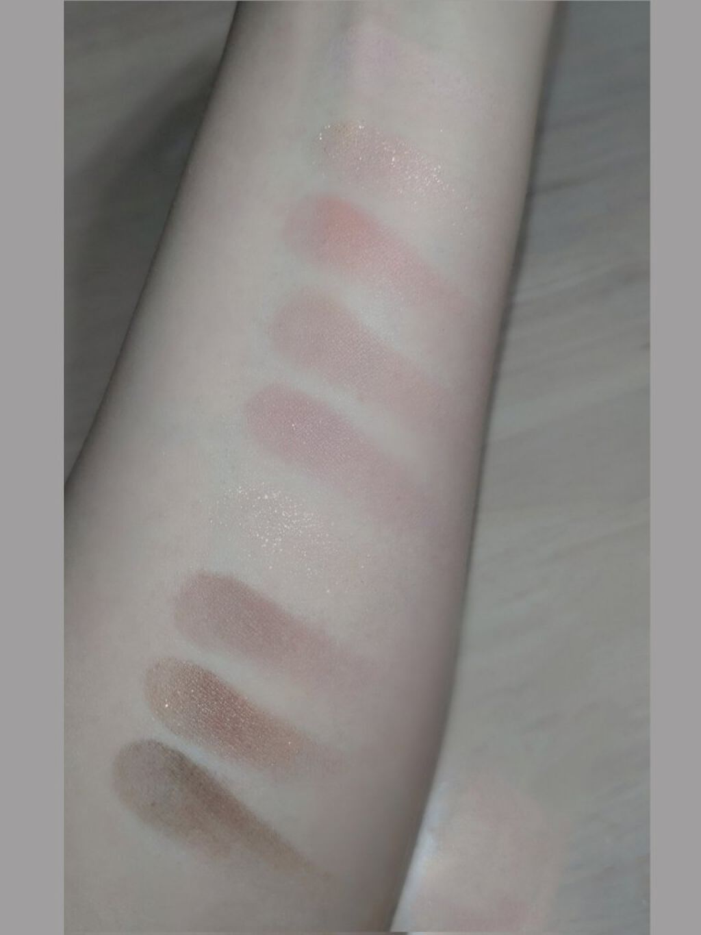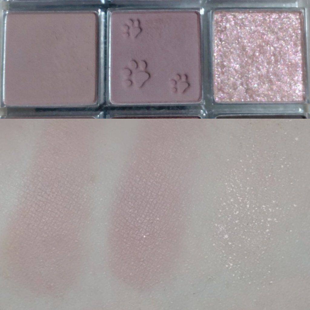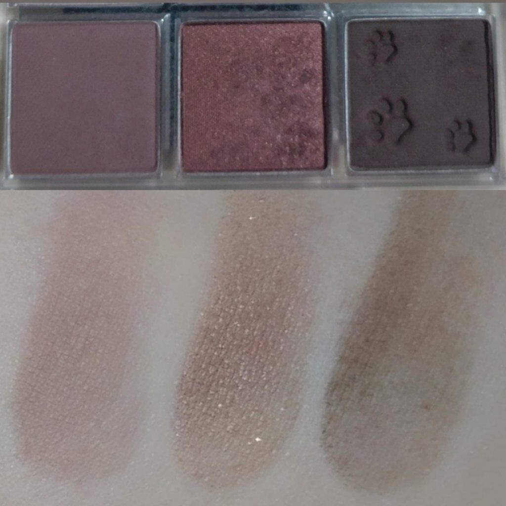 ベースは少しブラウンが混ざったようなくすみピンクという感じの色味です💡もちろん単体でも使えますが、淡めの発色なので手持ちのアイシャドウと色々組み合わせても良さそうです🙆 青の偏光ラメがぎっしりと入っているのですが、そこまでラメが大きすぎず繊細なラメ感なのでギラギラしすぎないところが良いなと思いました☺️ ただ実際使用してみて結構ラメ落ちするかなーという印象だったので、アイシャドウベースは塗った方が良いと思います🤔💡 ラメ感が本当にとってもかわいいので、ラメ好きの方は是非チェックしてみてください✨