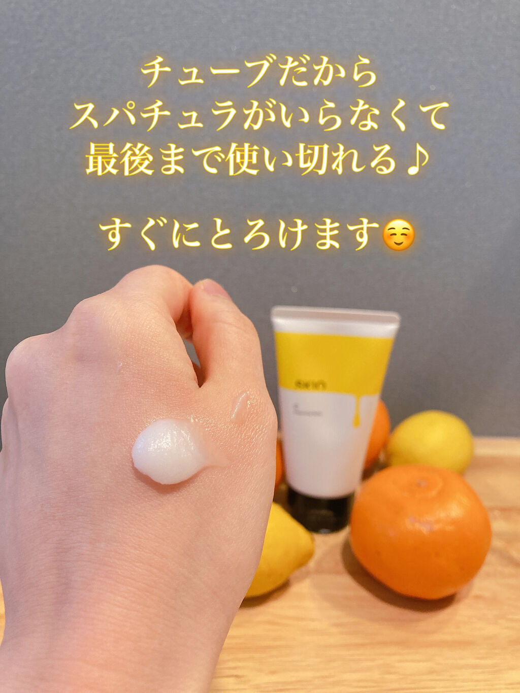 W洗顔不要のチューブタイプのクレンジングバームです。やわらかなテクスチャーで、肌にのせるとトロトロに。 メイクとのなじみもよくスルスルと落ちてくれます。バームにありがちな毛穴に詰まってしまう感じもありません。 香りはシトラス系。これは好みが分かれそうです💦
