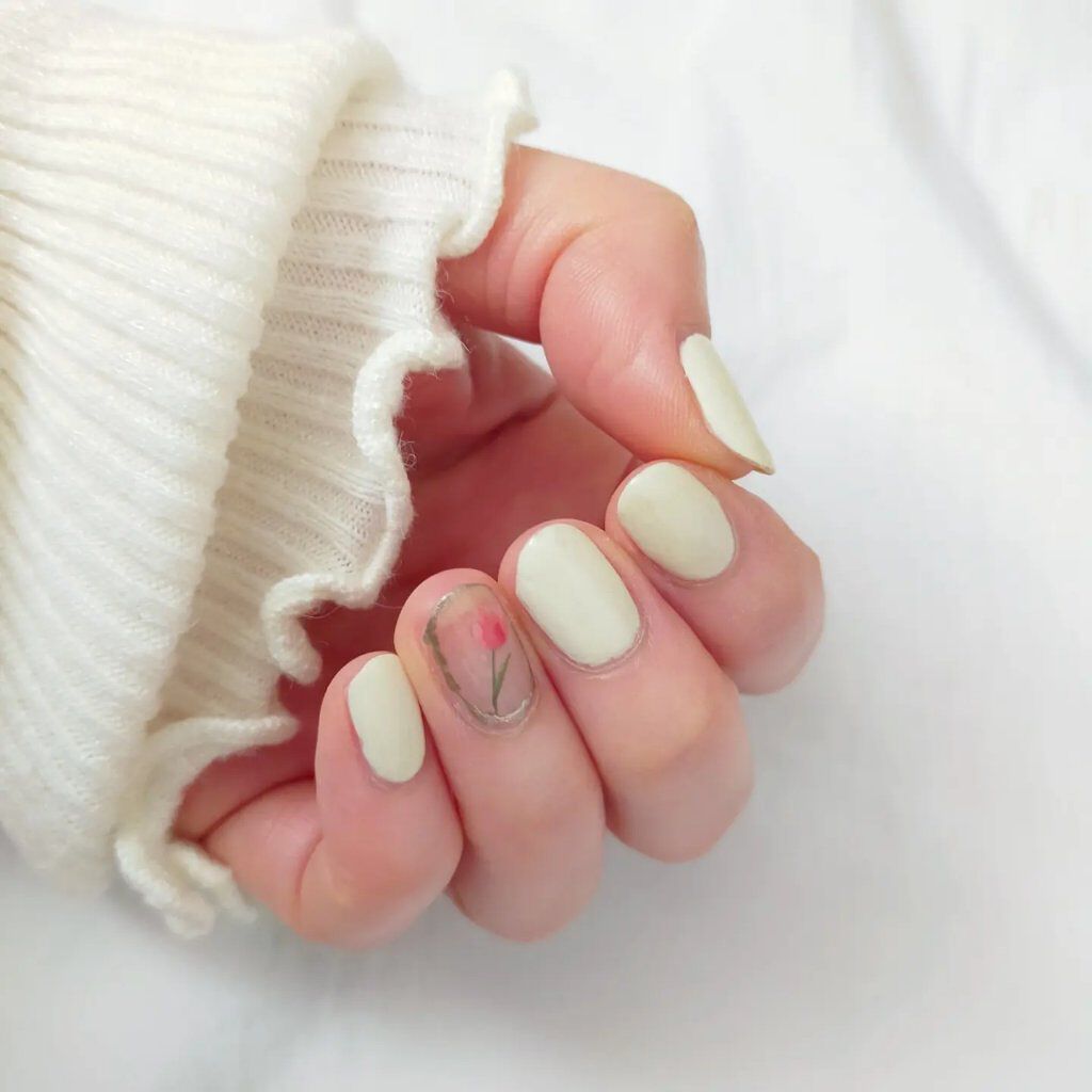 ネイホリのミルキーカラーとラメ入りのトップコートの組み合わせは可愛くてお勧めです💕 シアーな薄付きのカラーなので、グラデーションもしやすいです。今回は縦グラデーションにしましたが各指それぞれベタ塗りしするだけでも可愛いと思います🤗 親指のシェルとパールでリボン風にするのもお気に入りです(*˘ ˘*)♥