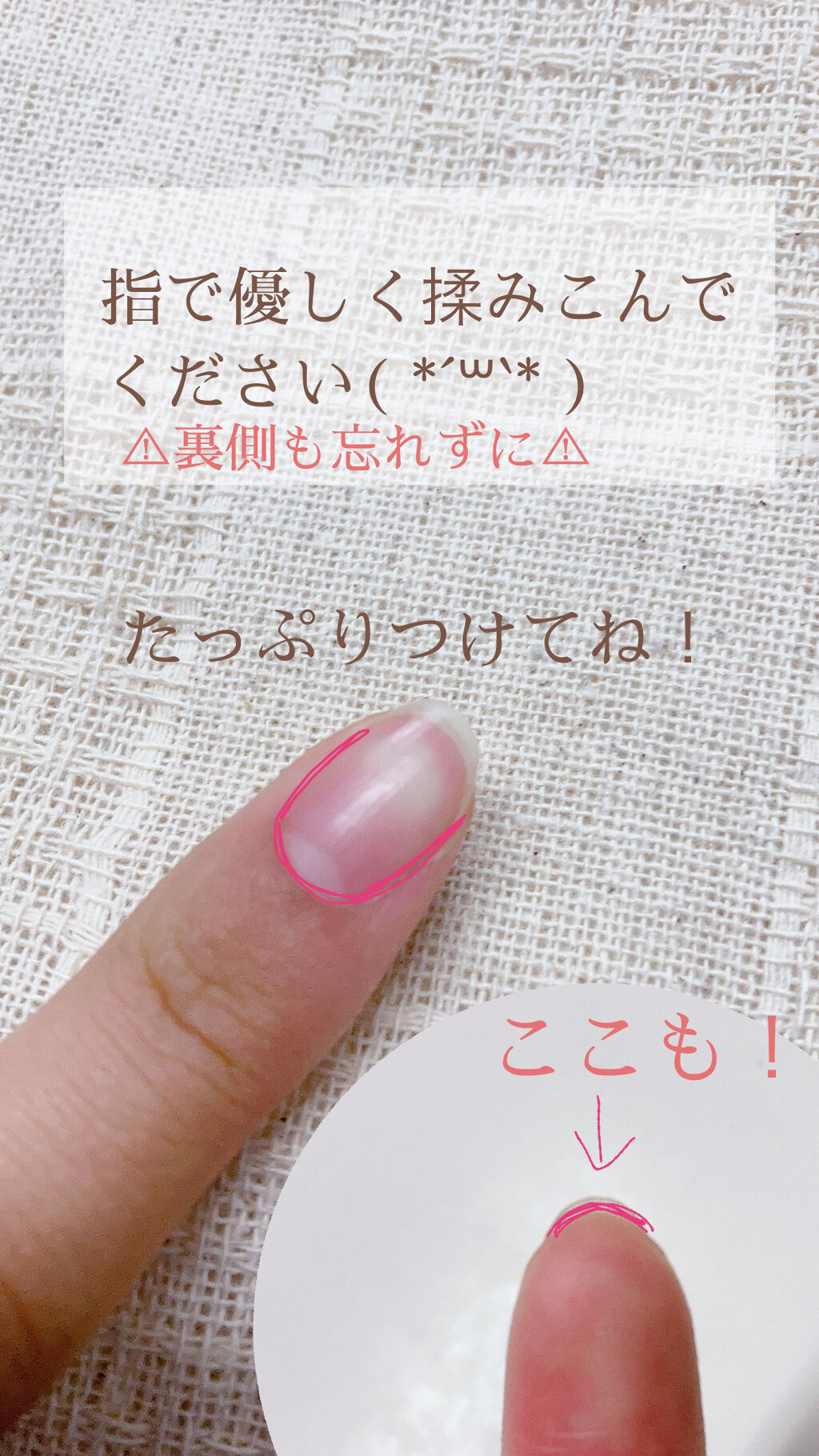 こんな感じで甘皮が無くなるだけで爪の生え際辺りがスッキリして綺麗に見えます!😊 無印良品ネイルケアオイルを爪の生え際辺り、爪全体、指先、爪の裏(塗れるところ)にたっぷり塗ります。 手で優しく揉みこみます。この時ついでに指先のマッサージもしてあげるのがオススメです😊 休日は、M・N・B・Bパーフェクトネイルコート グロッシーか、無印良品ネイルカラークリアレッドを使用しています。このふたつは前に紹介してるのでぜひ見てください✨ どちらもナチュラルに仕上がるのでとてもお気にです😊