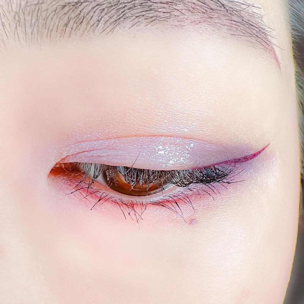 ピンクにグレージュも良いですね👌💗 今日は可愛らしい感じにしてみました💕 上下瞼黒目〜目頭側にラメを塗ってキラキラさせております🤩 目尻はマットのピンクを濃いめに重ねて💗 グレージュのアイライナーと相性◎