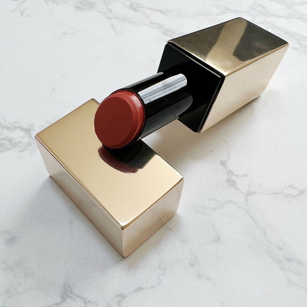 リボンでラッピングしたようなパケが可愛い! 同じく発売されたアイシャドウパレットと合わせると良いみたいだけど 黄みと赤みのバランスが絶妙なヌーディブラウンでこっちはシアーな発色! 柑橘系の香りがするので匂いが苦手でなければ値段も良心的でホリデーとしてはすごく手が出やすいはず✨
