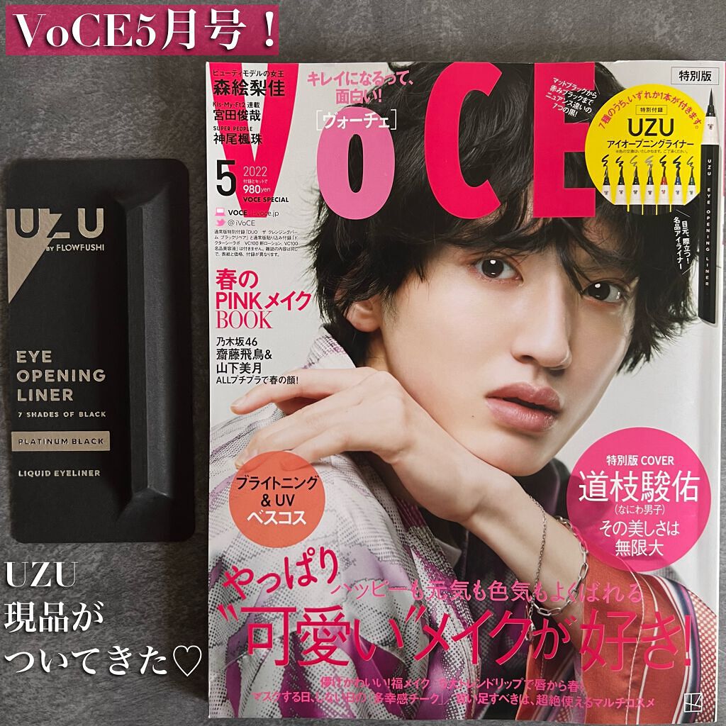 アイライナーの付録目的で雑誌購入しました。予約していなくて店頭になければ諦めるところ、売っていたので即決!UZUBYFLOWFUSHI7SHADESOFBLACKPLATINUM-BLACKでした!グレージュのような色味だったので、使いやすく...