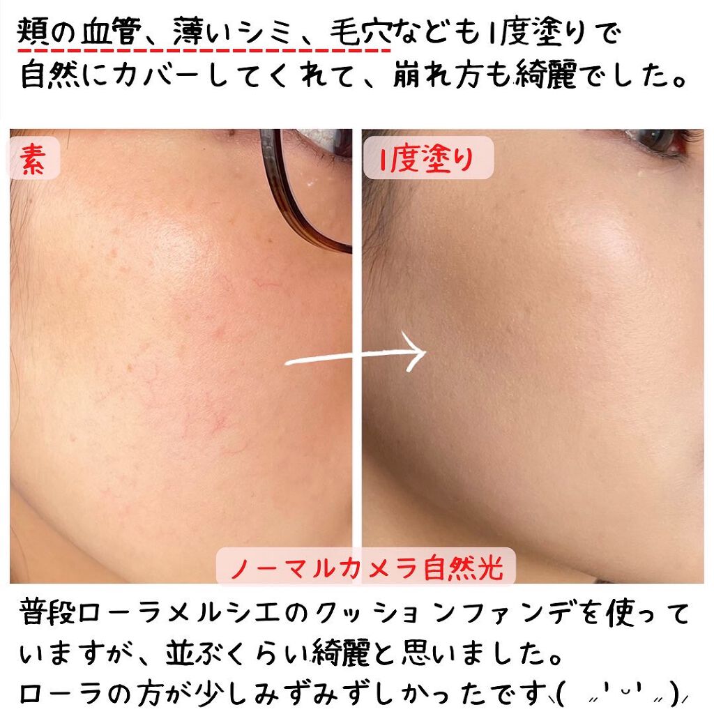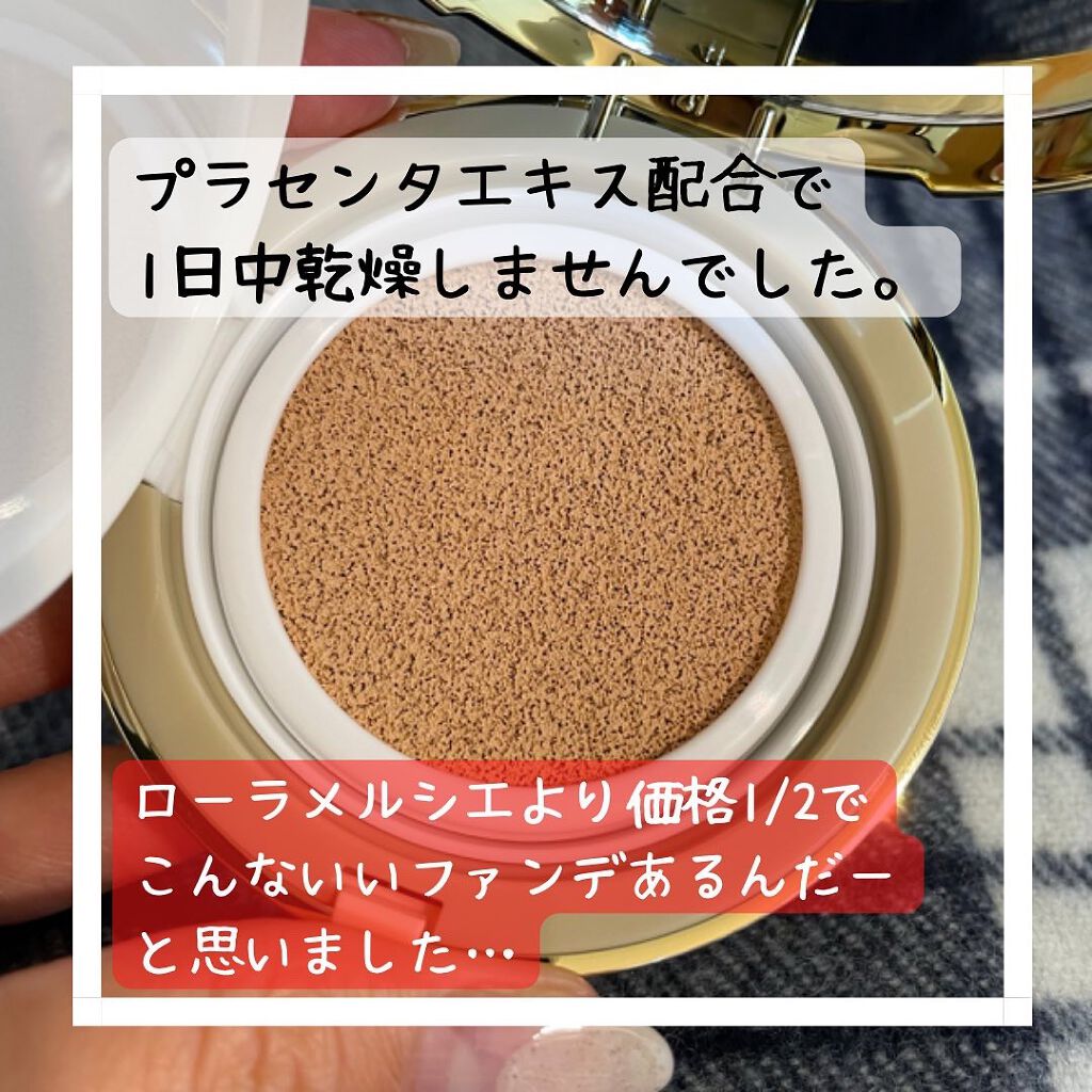 プラセンタエキスやローヤルゼリーなどが配合されていて、メイクしながらスキンケアが叶うんです✨ 成分表を見てみたら、ほかにもナイアシンアミドやダマスクバラ花エキスなどの美容液成分が72.9%も配合されていて、まるでパックをしているような潤いのあるツヤ肌へ導いてくれます。 高密着パウダー配合で崩れにくく、また酸化しにくいブライトアップオイルが使われているので、時間が経ってもくすみにくいのが👍 一日中、透明感のあるモッチリうるツヤ肌がキープできました。 ナチュラルなツヤ肌に仕上げたい方、乾燥が気になる方、朝のメイク時間を短縮したい方にもオススメです。
