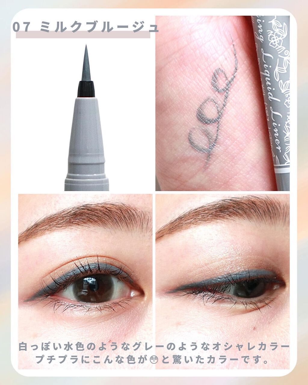 色素薄い系メイクにおすすめ!抜け感グレージュ✼••┈┈••✼••┈┈••✼••┈┈••✼••┈┈••✼キャンメイクラスティングリキッドライナー05グレージュ✼••┈┈••✼••┈┈••✼••┈┈••✼••┈┈••✼ブラウンよりも柔らかい、抜け...