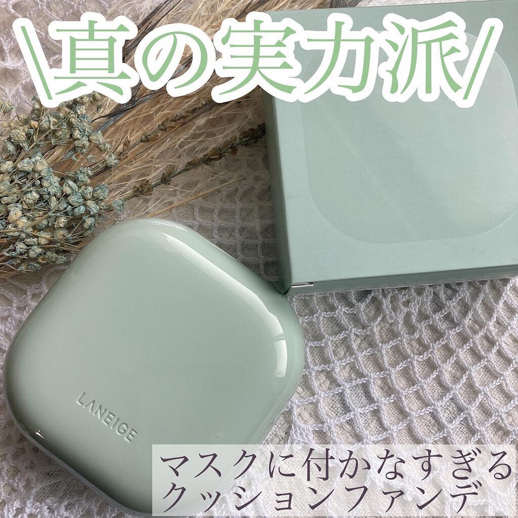 - 肌にぴたっと密着することで、24時間*¹崩れにくい ナチュラルマット肌に仕上げる世界中で大人気のクッションファンデーション *¹当社調べ、個人差があります。 1.VIVID COVERAGE ™(ヴィヴィッドカバレッジ) 技術を採用 LANEIGEクッション史上最も小さいパウダーが、 しっかりカバーなのに重くなく、軽い付け心地とナチュラルな仕上がりを実現しました。 塗りなおしても厚塗り感がなく、カラーメイクをさらにひきたてます。 2.高い密着力を実現したStrong Fixing Formula™ (ストロングフィクシングフォーミュラー )技術を採用し、 皮脂や汗に強くマスクやスマートフォンにも ファンデーションがつきにくい肌に仕上げます 3.皮脂コントロールパウダー配合で汗や皮脂による崩れを防ぎ、 肌のうるおいを閉じ込め乾燥しずらい、ナチュラルなセミマット肌を実現します。 4.アモーレパシフィック初のブルーライトカット効果採用のクッション スマフォやPCといった電子機器、LEDや蛍光灯から発せられるあらゆるブルーライトから肌をプロテクトします。
