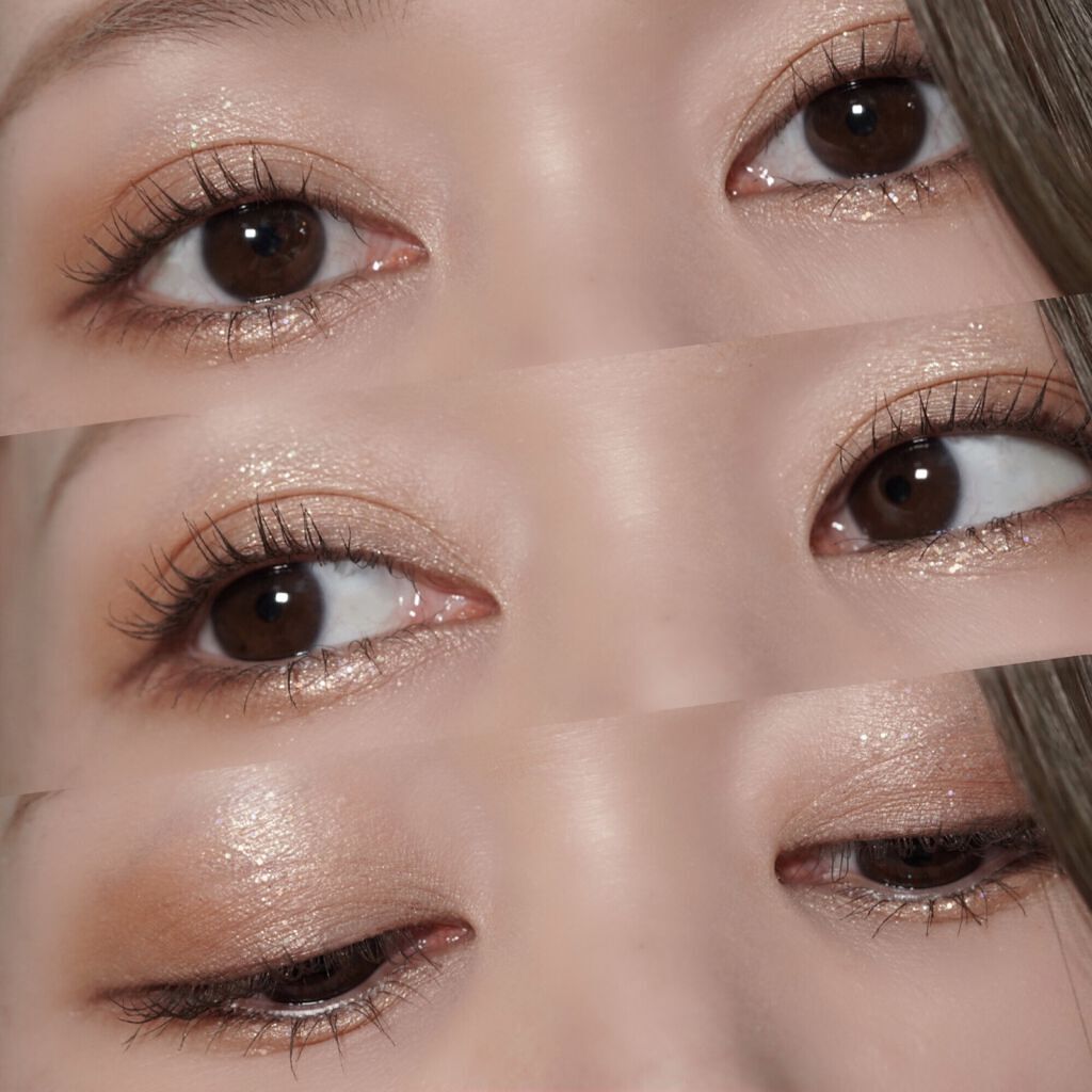 よくパレットのなかで明るいカラーをベースにまぶたに広く塗ることが多いのですが、パール感のあるカラーを避ける🙆♀️! パール感たっぷりの明るいカラーは涙袋に使うぐらい光を集めてぷっくり見せてくれるので、まぶたに広く使うと腫れぼったく見えがち😓 目元を明るくみせてくれたり、次に使うアイシャドウをぼかしやすくしてくれるけど、すっ飛ばしてメインのカラーを塗っちゃう✊🏻❤️🔥 涙袋にはたっぷり塗ってぷっくり見せる🙆♀️💕 シルキースフレアイズのマットタイプはすごく優れているな〜と感じました☺️💗 赤やオレンジなどは、入れすぎると腫れぼったく見えやすいので、見せたいカラーは下まぶた目尻にのせて色をたのしむ♡♡ パール感なしの透けマットだけじゃ物足りない… そう感じさせない華やかなラメが左上に入っているので黒目上と涙袋にのせるとすごく可愛い仕上がりに😍! 厄介な左右差のお陰でマットアイシャドウが好きになりました😌💕