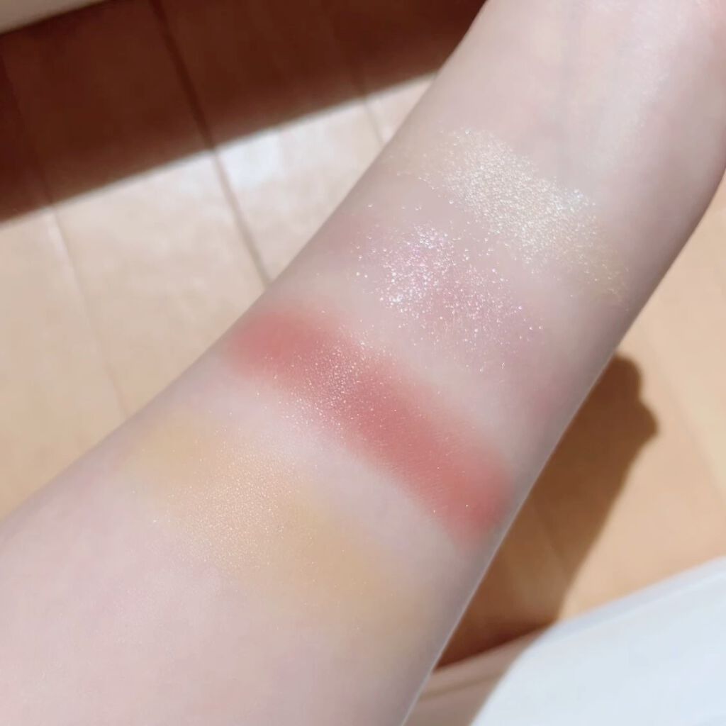 白いハイライトは凄かった!!! 白いハイライトは発光するというよりはマット寄り もうひとつはガッツリ発光するパールハイライト ハイライトも質感を2種類組み合わせるとより肌が立体的にみえるので是非試してみてください🫶✨