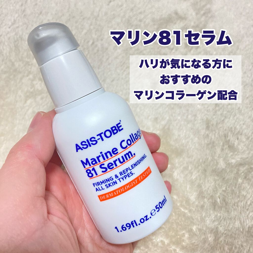 これ、癖もなくてつけやすくてしっとりするし気に入ってます! マリンコラーゲンは動物性のコラーゲンより浸透が早いらしいです。 透明だしサラサラだし、他のスキンケアの邪魔をしなくてヒアルロン酸も入ってる。 ASIS-TOBEのシリーズで朝顔を洗うととても肌すぺすべ。 ASIS-TOBEの洗顔料が、弱酸性で、マリンコラーゲン81セラムのあとに塗るASIS-TOBEの化粧水が白樺エキスなのも良いのかも🤔 41度発熱して毎日2回3回高熱が必ず出てますが発熱した時の肌ってほてってごわつくのにすべすべなのはASIS-TOBEのお陰かも!?