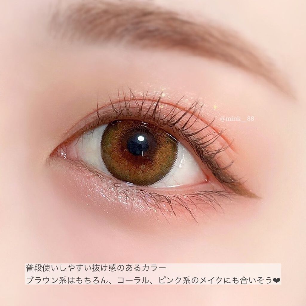 ほんのりピンクにブラウンのフチ デザインもナチュラルでふんわり盛れる🤍 くすみピンクと大きめのグラフィックで ガーリーな雰囲気に🎀 くすんだアッシュ系で垢抜けた瞳に♡ 透明感のある儚げなピンク♡ ピンク初心者さんにもおすすめ!