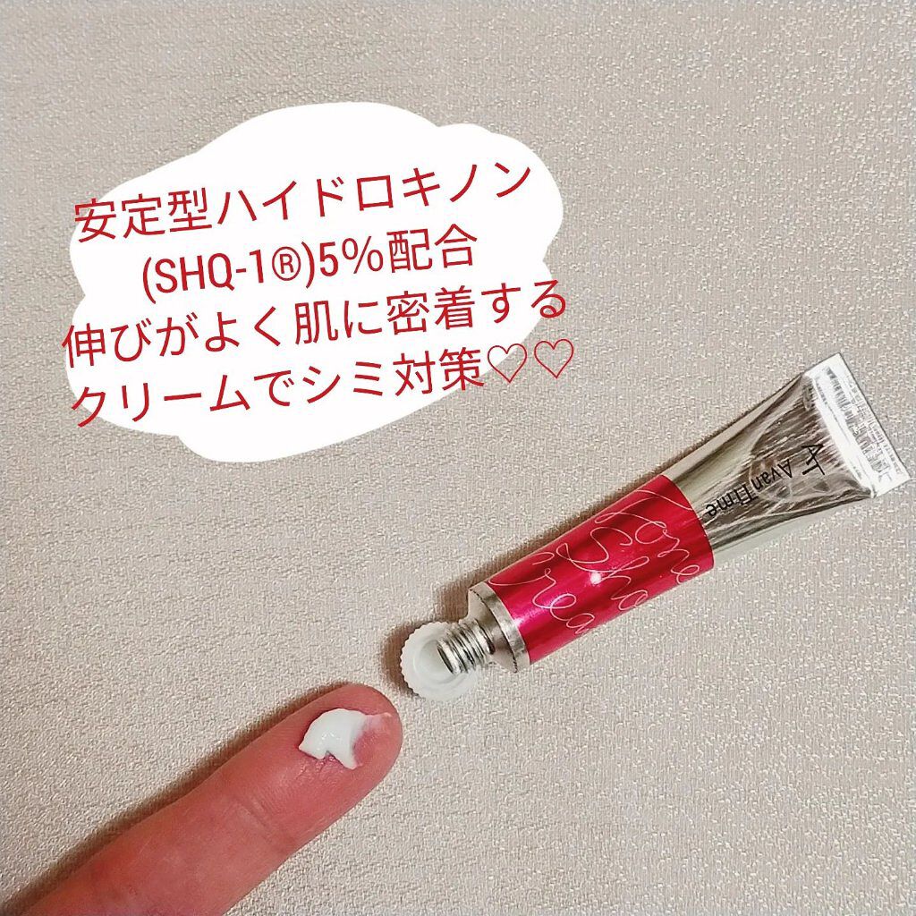 - 「アバンタイム トーンショットクリーム」は安定型ハイドロキノン SHQ-1を5%配合したクリームです。成分が徐々に溶け出しターゲットエリアにアプローチする製品設計であるため、肌にやさしく持続的な作用が期待できます。滑らかで密着しやすいクリームタイプなので、気になる部分を集中的にピンポイントケアすることが可能です。夜のスキンケアの最後に、お肌の気になるポイントにご使用ください。
