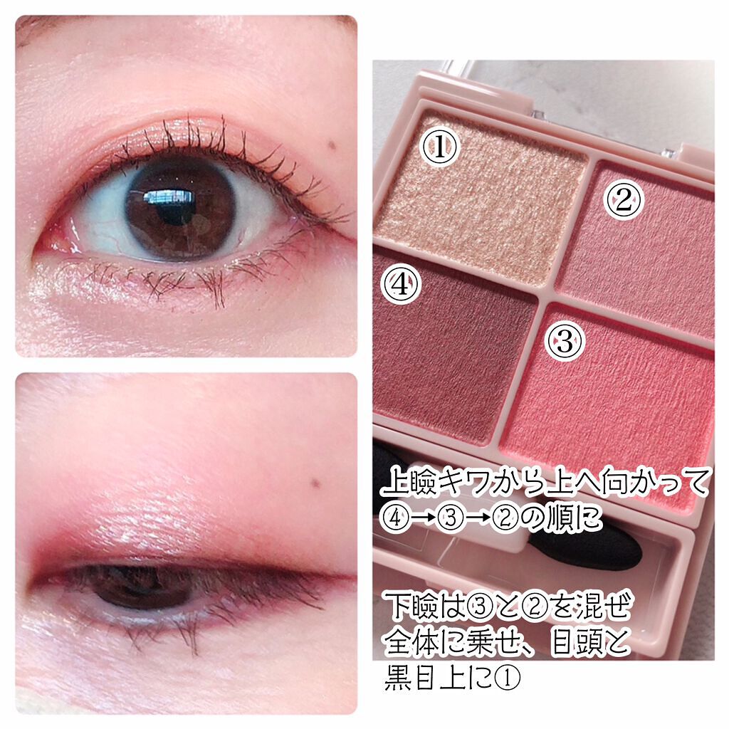 - シルキースフレアイズの姉妹品♡ 肌に溶け込むような透けマットシャドウ 透け感のある柔らかい仕上がりになるマット3色と、透け発色の繊細ラメ1色のパレットシャドウ♡ 完全マットアイや、ラメ×マットアイなど、メイクのパターンを楽しみましょう!