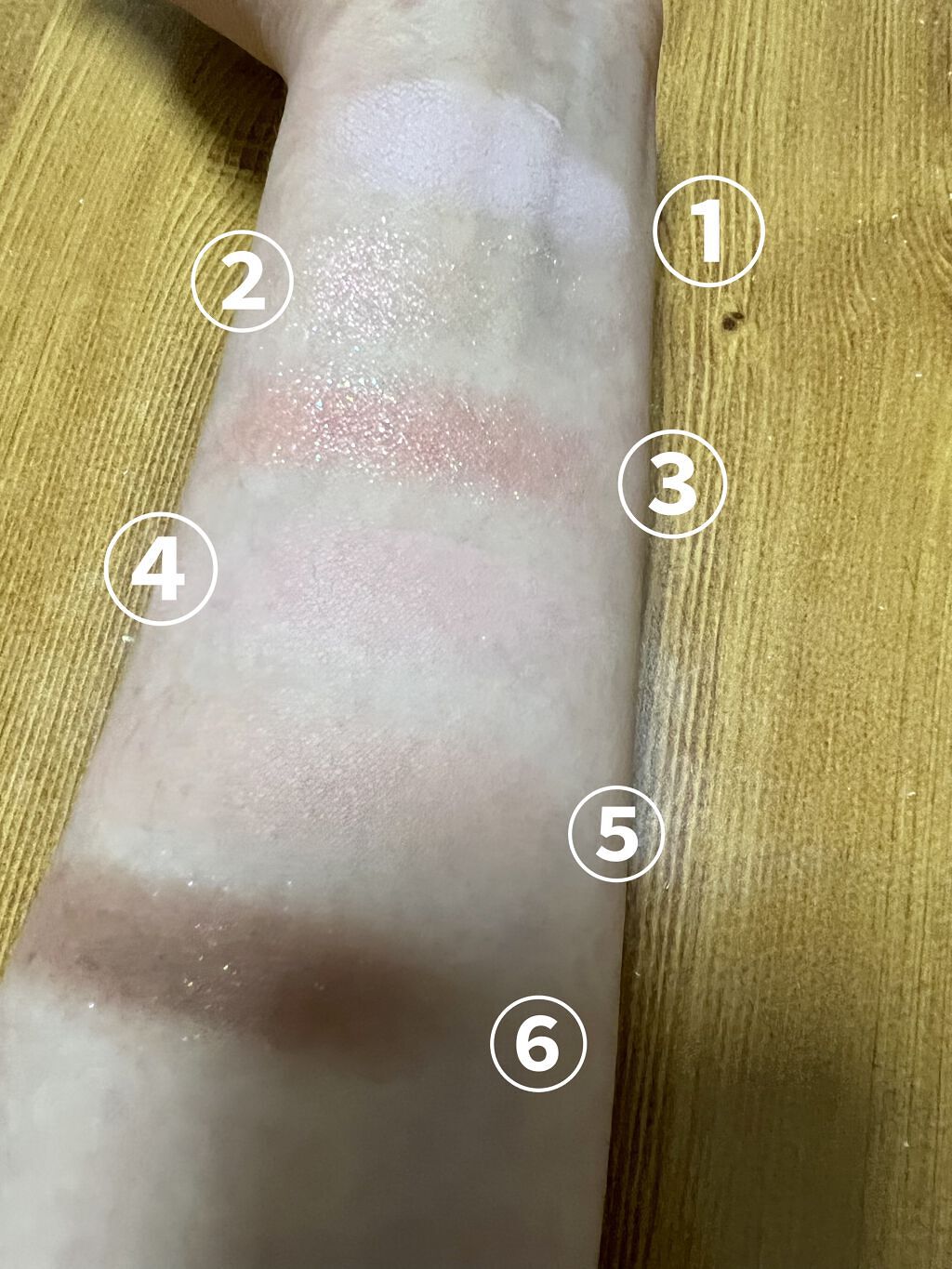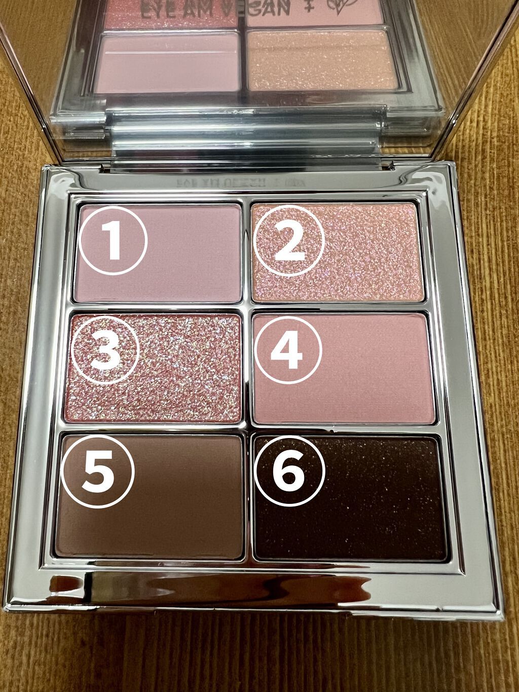 - シアーマット、シアーサテン、シアーグリッターなどさまざまなテクスチャーが入った6色構成のヴィーガンアイシャドウパレット。落ち着いたヌードベースと暗めのピンクベースがトーンオントーンで構成され、誰でも簡単にレイヤリングを楽しめます。さらには鮮やかな透明グリッターが爽やかな輝きを演出し、しっとりソフトな水分感のあるテクスチャーで、塗りやすく粉飛びなしの完璧なフィット感を実現。ほのかに優しい発色がナチュラルで美しい目元へと導きます。