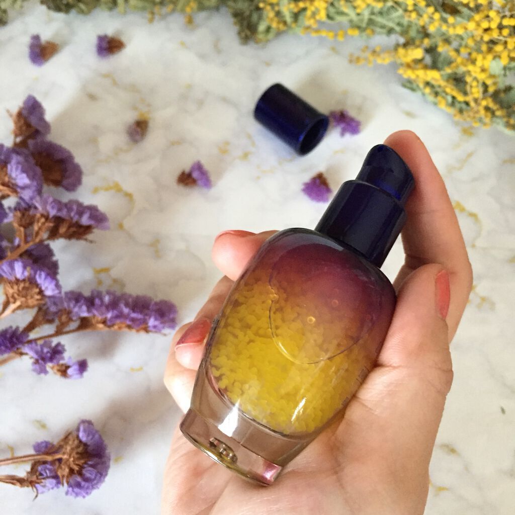 睡眠時にお肌を回復させてくれる美容液💛 夜、化粧水でお肌を整えたあと3プッシュ程度を馴染ませます 黄色いオイルカプセルが お肌にのせると弾けてセラムと一体化します 翌朝までお肌のしっとり感がキープされていて ハリやツヤが出たような気がします✨
