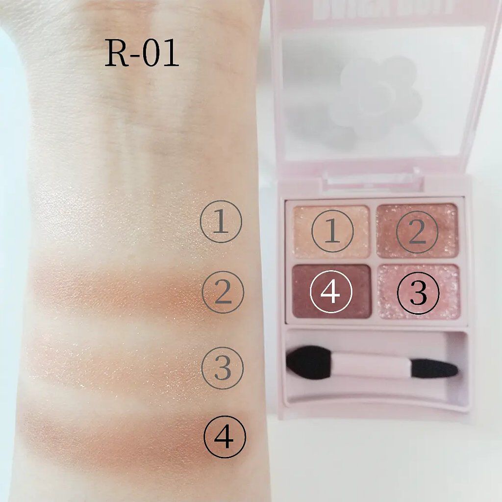 - 透け感発色と輝きを兼ね備えた4色のアイカラーパレット。重ねるごとに輝きを増し、透明感のある立体的なグラデーションアイメイクが完成。アイメイクのバリエーションを広げる高輝度ラメをon。3種の美容エモリエントオイル*配合。目元の乾燥を防ぎ、うるおいを保ちます。 *ホホバ種子油、アボカド油、メドウフォーム油