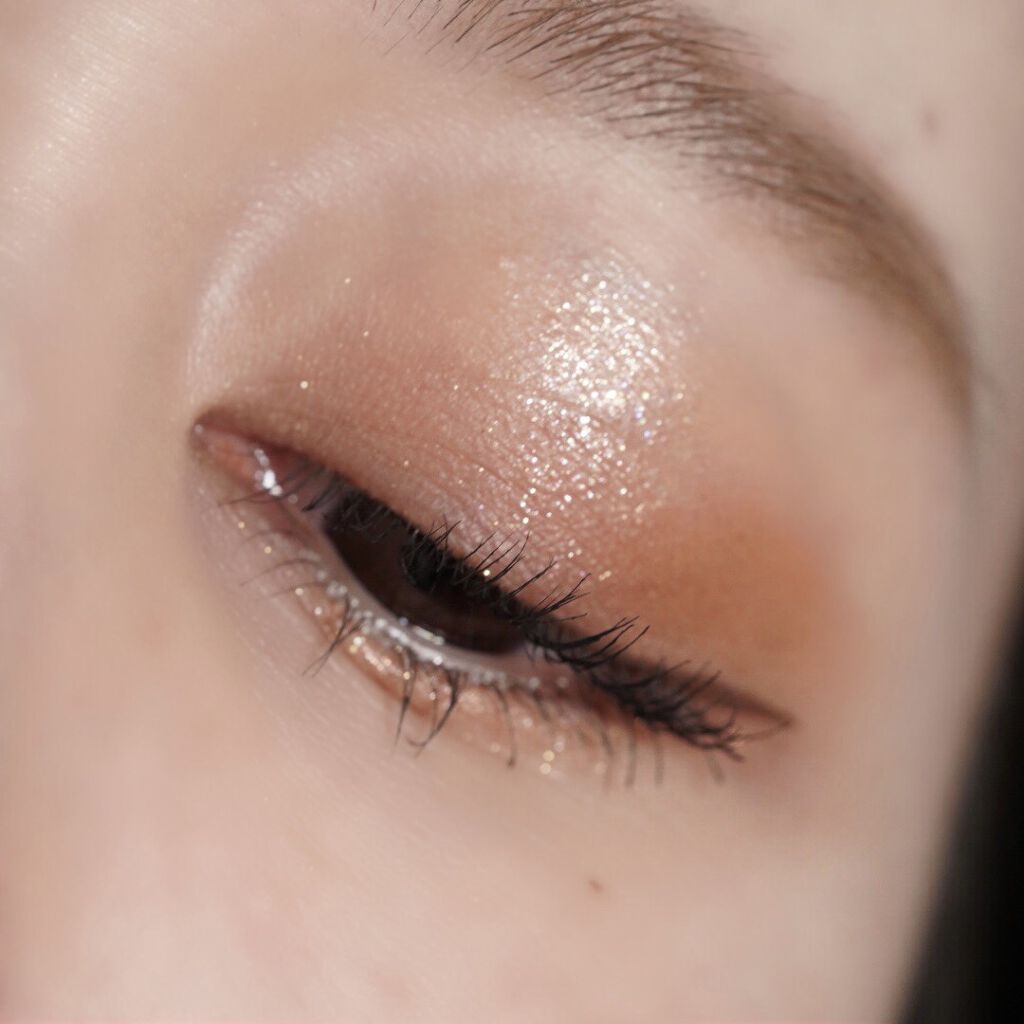 よくパレットのなかで明るいカラーをベースにまぶたに広く塗ることが多いのですが、パール感のあるカラーを避ける🙆♀️! パール感たっぷりの明るいカラーは涙袋に使うぐらい光を集めてぷっくり見せてくれるので、まぶたに広く使うと腫れぼったく見えがち😓 目元を明るくみせてくれたり、次に使うアイシャドウをぼかしやすくしてくれるけど、すっ飛ばしてメインのカラーを塗っちゃう✊🏻❤️🔥 涙袋にはたっぷり塗ってぷっくり見せる🙆♀️💕 シルキースフレアイズのマットタイプはすごく優れているな〜と感じました☺️💗 赤やオレンジなどは、入れすぎると腫れぼったく見えやすいので、見せたいカラーは下まぶた目尻にのせて色をたのしむ♡♡ パール感なしの透けマットだけじゃ物足りない… そう感じさせない華やかなラメが左上に入っているので黒目上と涙袋にのせるとすごく可愛い仕上がりに😍! 厄介な左右差のお陰でマットアイシャドウが好きになりました😌💕