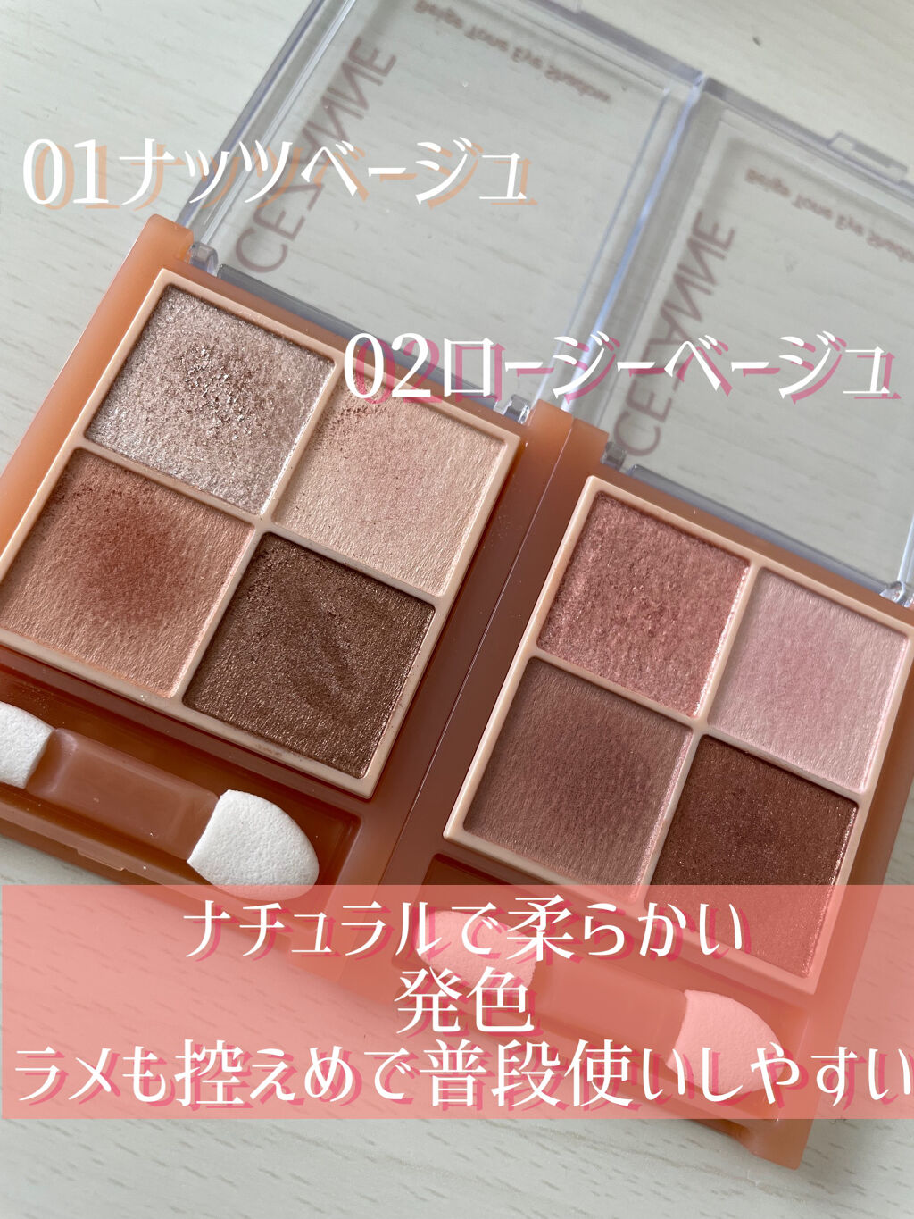 \CEZANNEセザンヌベージュトーンアイシャドウ/01 ナッツベージュ02 ロージーベージュふんわり発色で使いやすいキラキララメも可愛いこれでプチプラなんて!#わたしの運命のパレット...