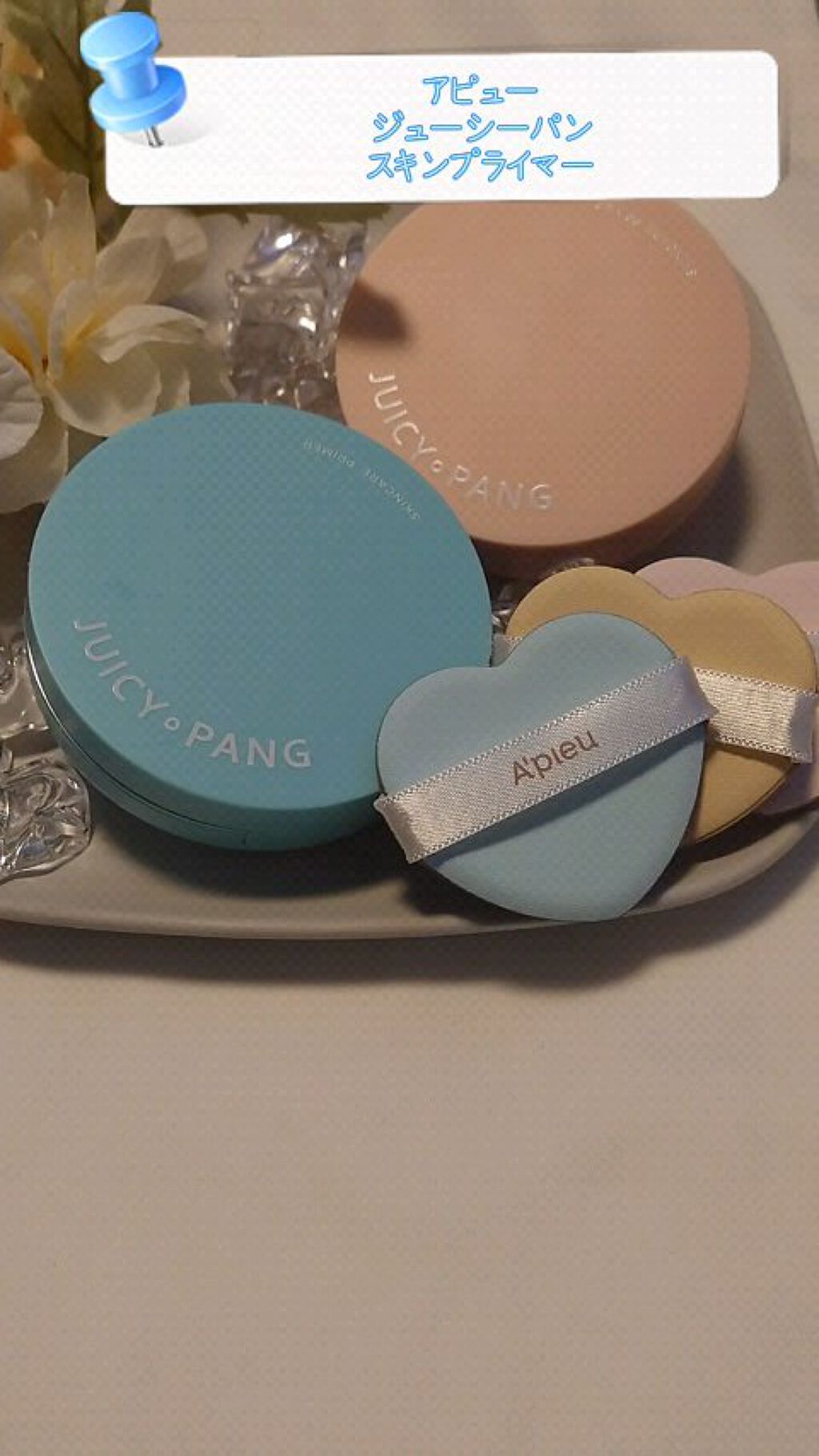 スキンケア、トーンアップ下地、UVケア、カラーコントロール、メイク直しの5役をこなす大人気アピューのジューシーパンスキンケアプライマー「ソーダ」が新しく発売されます。 2色のマーブル模様にハートのパフ♡もう見た目からしてめちゃくちゃ可愛いですよね。 すでにSNSでもデコパス級と話題ですが、今回は既存のピンクと新しく発売されるソーダの比較動画です。
