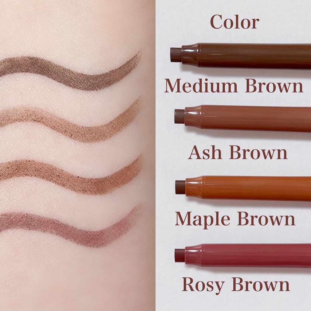- 肌あたりがまるでクリーム。するする描けて一日中崩れない。※1 ■長さと重さを付けた新形状の繰り戻し可能容器で、手ブレしにくく描きやすさアップ。 ■ドロースムース設計で密着成分と揮発成分が顔料を包み、なめらかな描き心地を実現。 ■汗・皮脂・涙・こすれに強いWプルーフ設計。 ■美容成分※2 を5種類から10種類にアップ。 ※1 社内試験済。効果には個人差があります。 ※2 保湿成分のこと <カラー展開> ■ミディアムブラウン 陰影のある目元を作る黄み寄りのビターなブラウン。洗練された大人の存在感を。 ■アッシュブラウン ほんのり赤み系ブラウンでふわっと自然な抜け感。ほの甘く、柔らかな表情に。 ■ロージィブラウン 華やかで印象的なくすみピンクブラウンで血色感のある目元に。 ■メープルブラウン オレンジ系ブラウンの透け感ラインで、目元にピュアな明るさを。 \2023.9 new/ ■ブラック 目元をくっきり強調する洗練カラー。