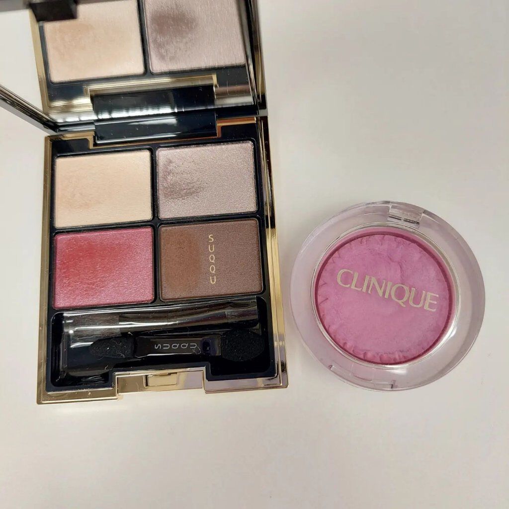 RMKのアイシャドウはこれがデビュー。こんなんブルベホイホイじゃん…。かわいすぎて即予約電話したわ🫠🩷 青みピンクに透明感爆発パープルにキラキララメ。締め色はグレージュっぽいブラウン。ブルベ大歓喜。 発色は調整しやすい。ピンクも見た目はビビッドだけど、ふんわり色づくので、好みの濃さにできるよ。